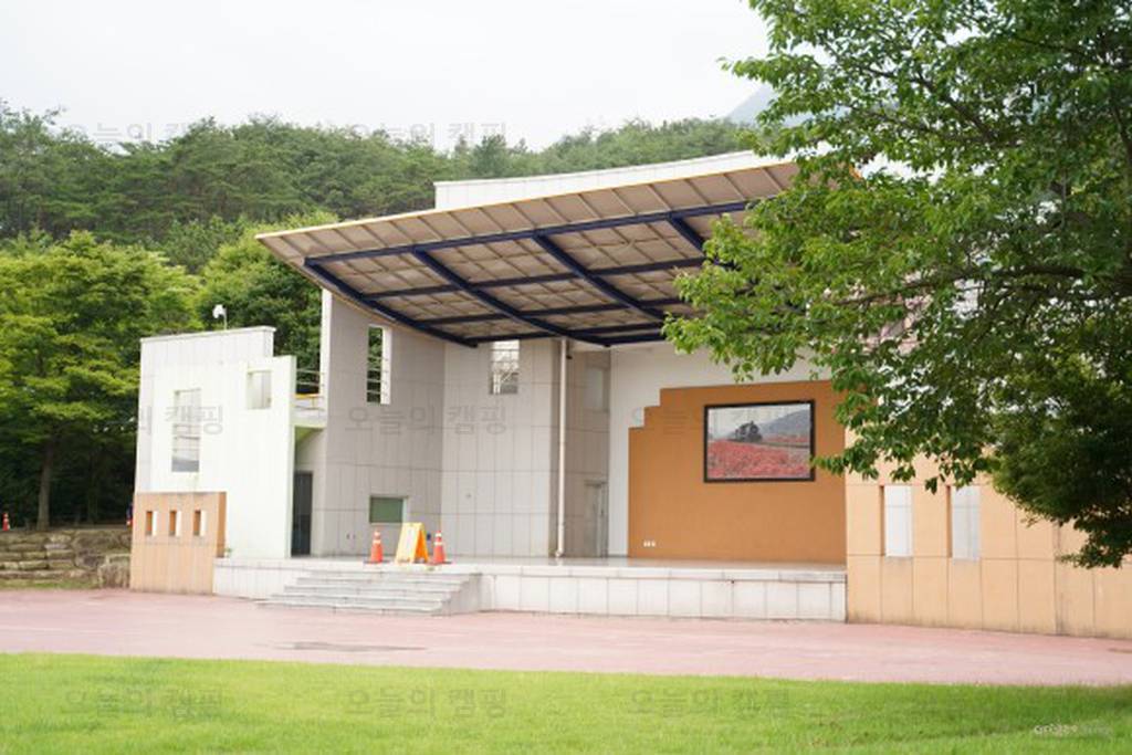 도림사 오토캠핑장 야외무대, 공연도 하고 각종 행사도 하고 했던 무대인데, 코로나로 쉬고 있습니다. 이렇게 보니 잔디광장이 넓습니다. 나비가 날아와 꽃잎사이를 누빕니다. 캠핑시설들이 나란히 놓여...