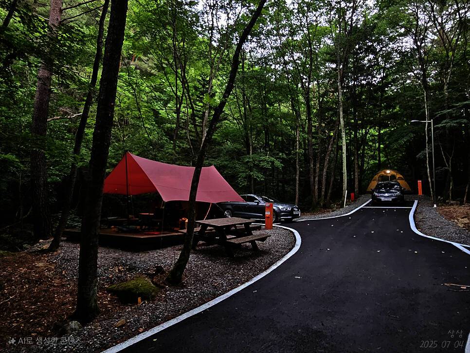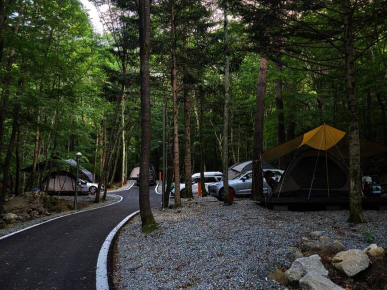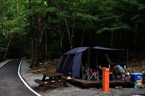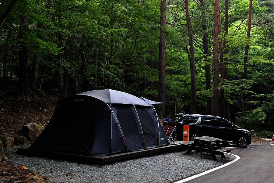 3단폭포의 명성과 단풍으로 유명한 휴양림속 야영장