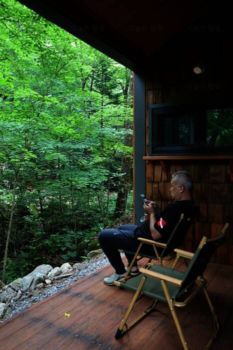 3년간의 공사를 마치고 재개장한 방태산자연휴양림. 휴양림 입구(매표소)에서 한참(1.5km)을 들어와야... 짐을 풀고 캠핑의자를 들고 숙소 앞 계곡 옆으로 나왔다. 시원한 맥주로 더 시원한 계곡물소리로 양양...
