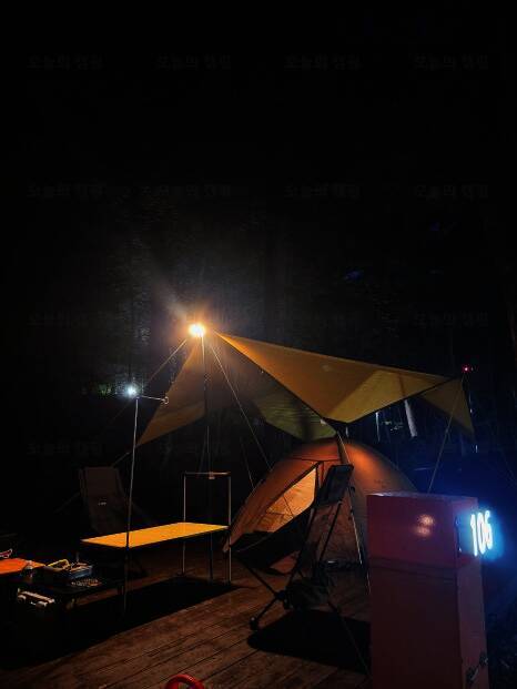 우중캠핑은 좋지만 비 맞으면 텐트 설영하고 철수할 자신이 없어서 #방태산자연휴양림 국산낙엽송2... 진짜 감사하고, 난 개진상된 느낌....ㅋㅋ 그렇게 우여곡절 많았던 캠핑장에서의 첫 날이 갔다. 야경도...
