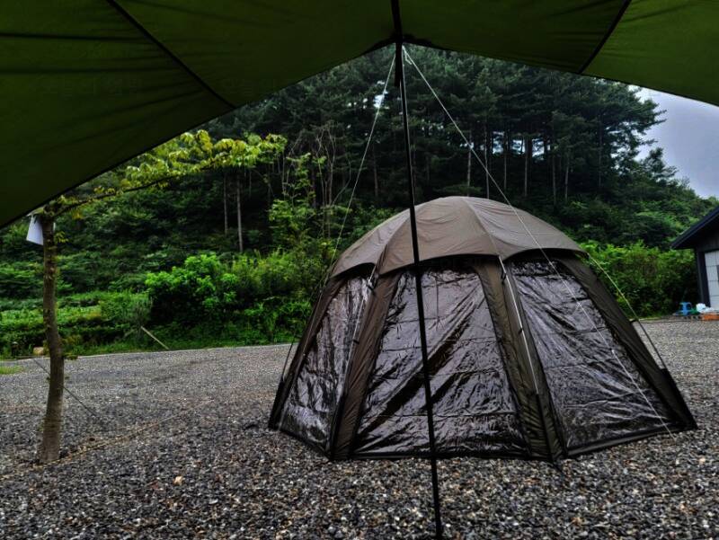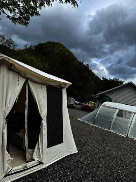 네비 찍고 캠핑679 도착! 캠핑장 내에는 매점이 없는데 생수랑 장작은 판매하고 있더라구요. 입구 바로 앞에 편의점이 있어서 넘 편했어요. 캠핑장 도착하니 사장님께서 마중 나오셨구요~ 남편이 텐트 치는데...