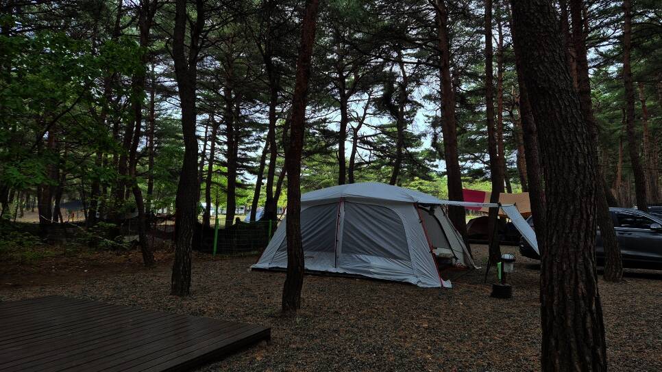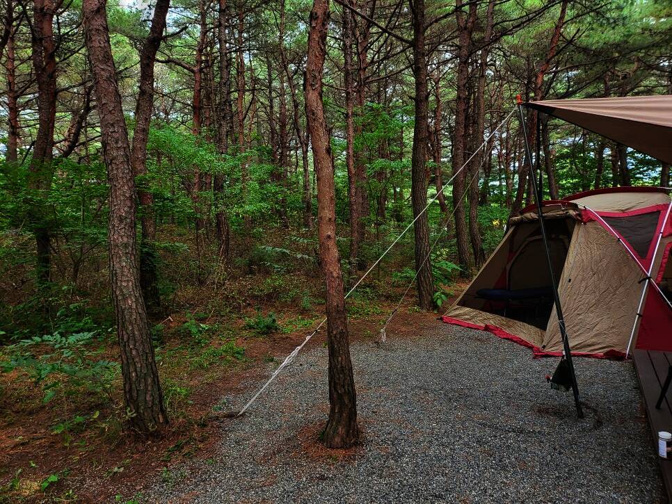 송전해변 인근 소나무숲 속 조용한 캠핑장