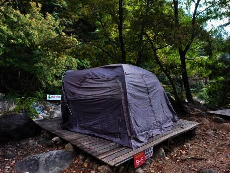 계곡과 폭포 풍경이 압권인 캠핑장