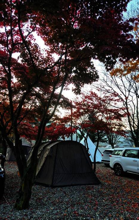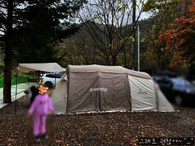 연천 보물나라캠프에서 세 번째 캠핑이었네요. ^-^ 큰아이 하교하자마자 서둘러 왔는데도 해가 짧아져서 금방 어둑 어둑... 신랑이 아침에 미리 가서 세팅 싹 다 해놔서 넘나 편했어요~ ^-^ 저희는 계곡이 보이는 쪽...