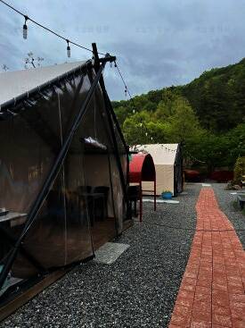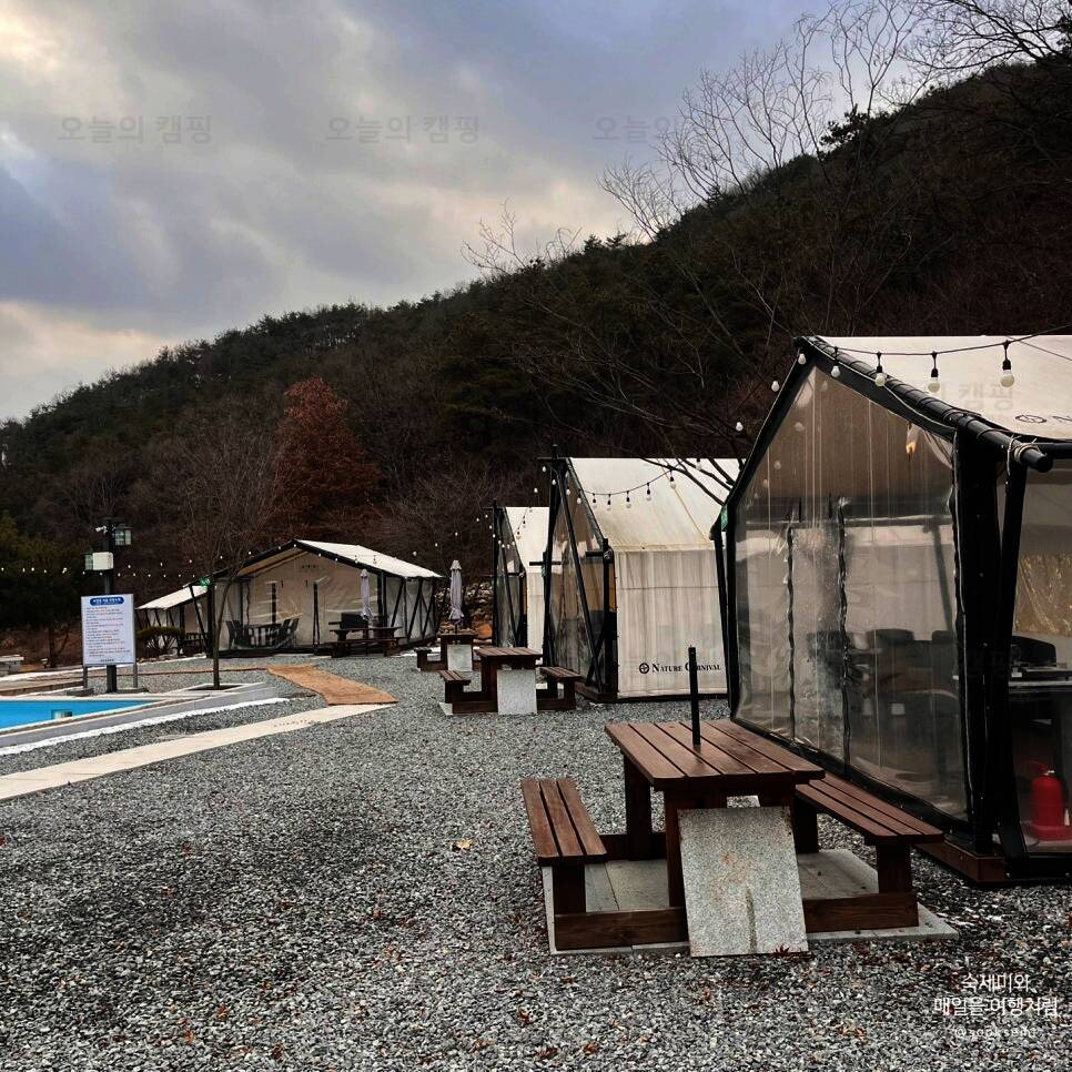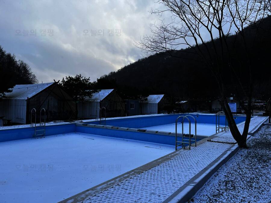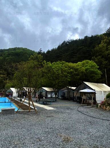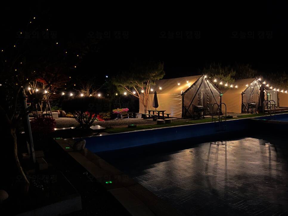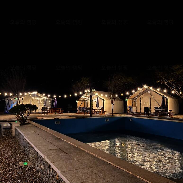수영장이 있는 숲속 글램핑장