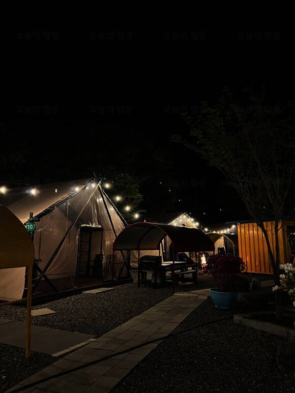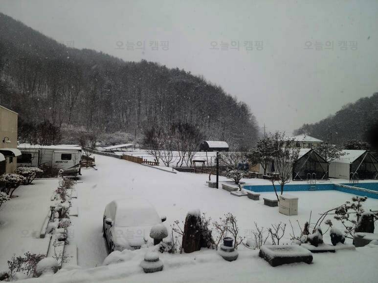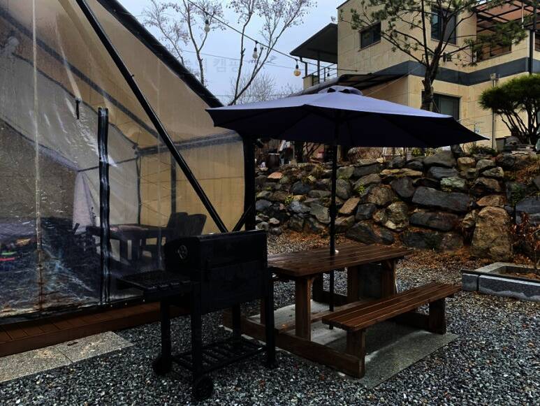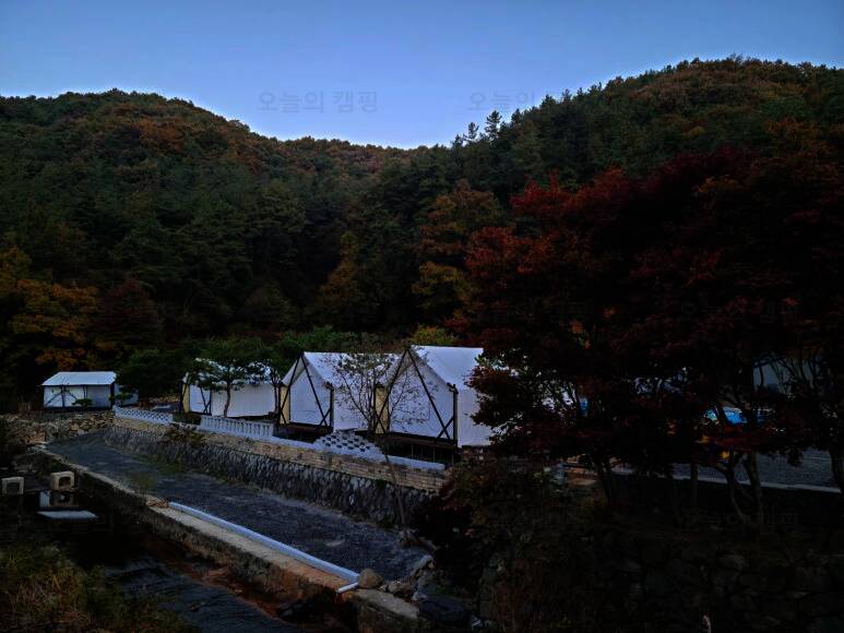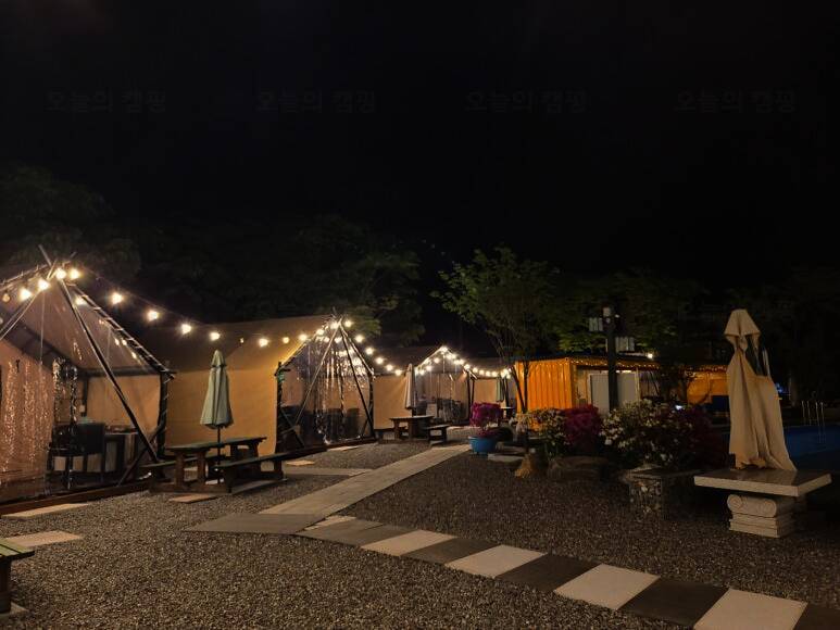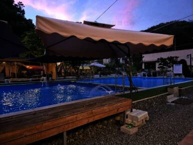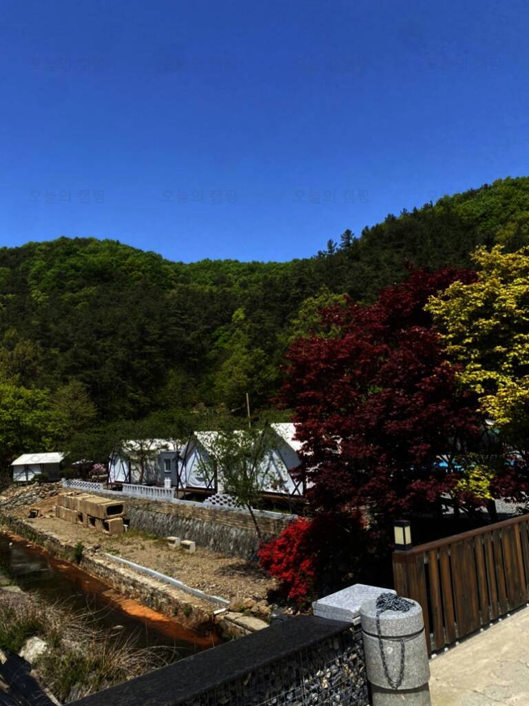 수영장이 있는 숲속 글램핑장