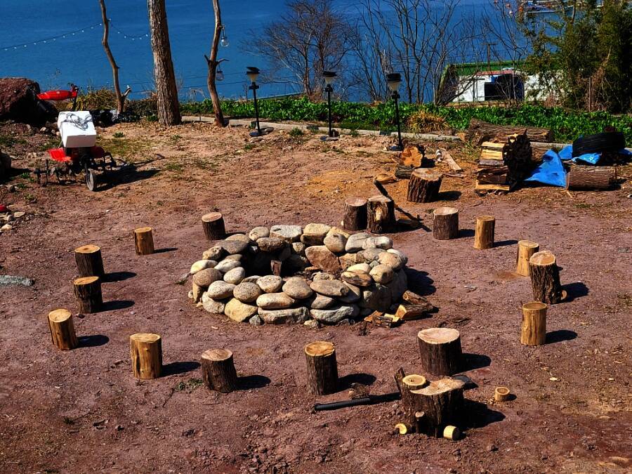 여기 호두마루 글램핑장에는 큰 개가 2마리 있습니다. 개 무서워하시는 분은 안 오시는게 좋을 것 같아요. 여긴 호두랑 마루랑 글램핑장 마스코트니까요. 사장님댁에서 기르는 호두랑 마루 산책할 때 어른은...
