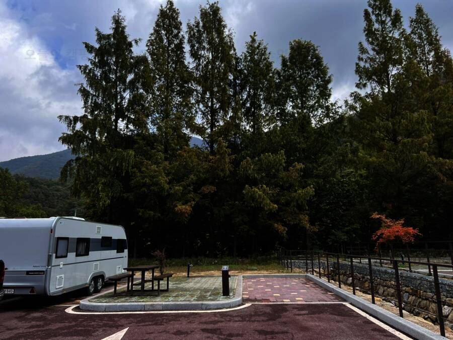 그리고 카라반, 캠핑카 전용 야영장답게 직배수 시스템 너무 좋았다. 이걸 사진을 안 찍었네 ㅠㅠ 충주 목계는 배수가 좀 쉽지 않았다. 배수 구멍이 높이가 좀 있어서 자연스레 배수가 좀 힘들었는데 하선암은...