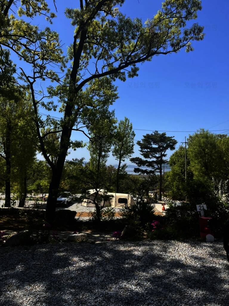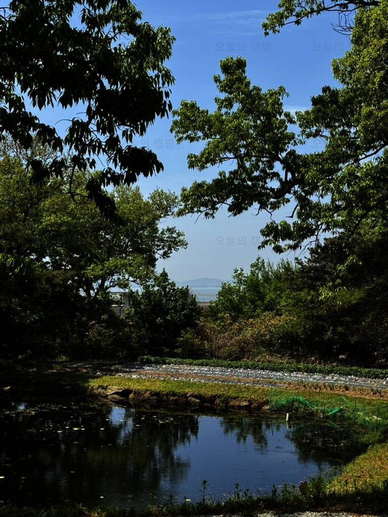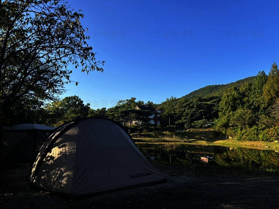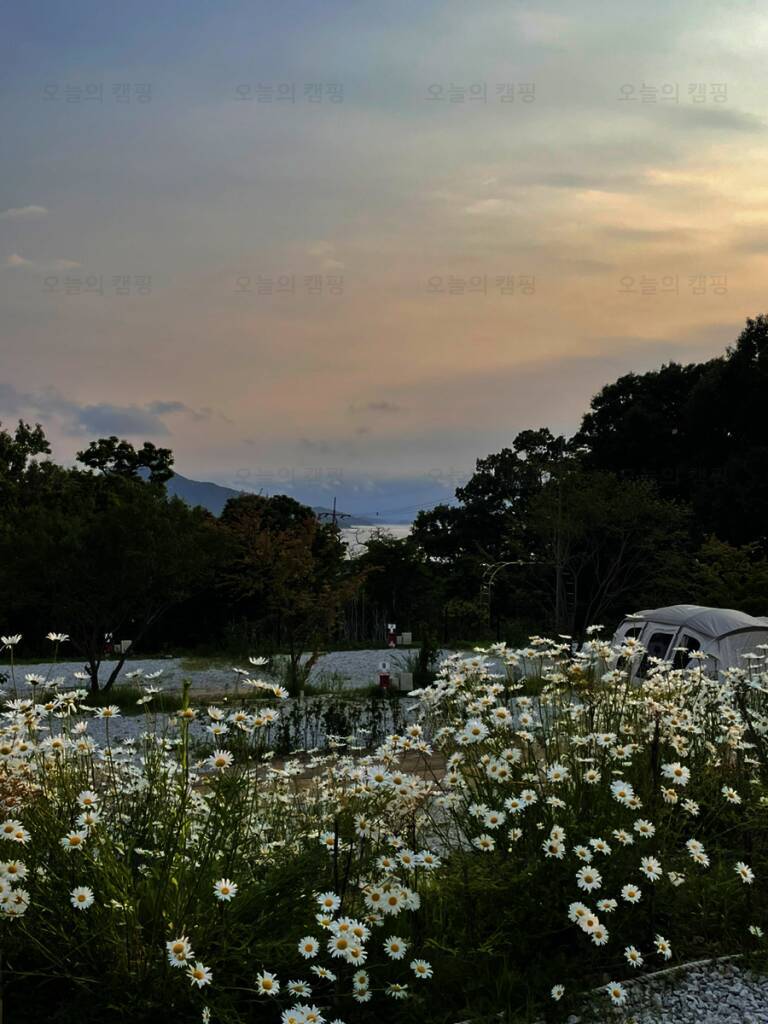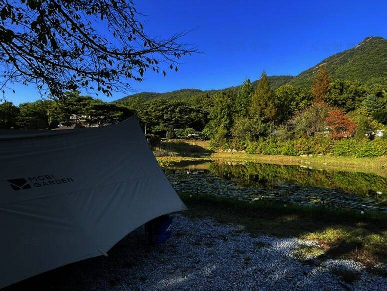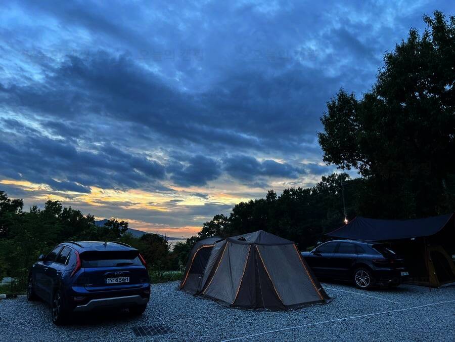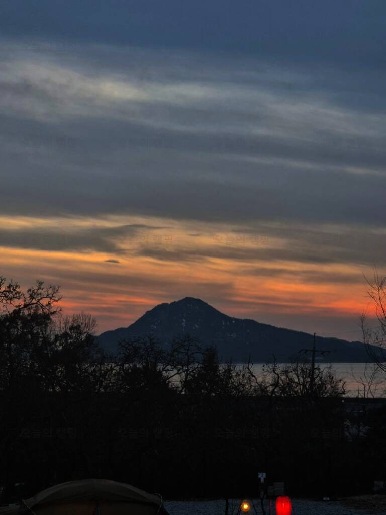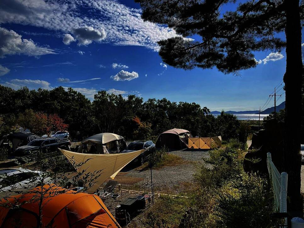 아름다운 산, 바다, 호수 뷰를 가진 캠핑장