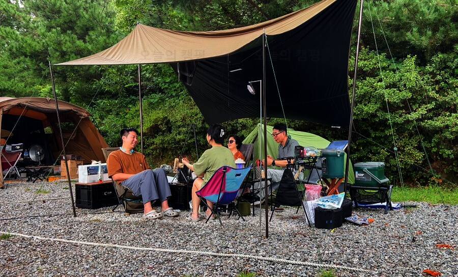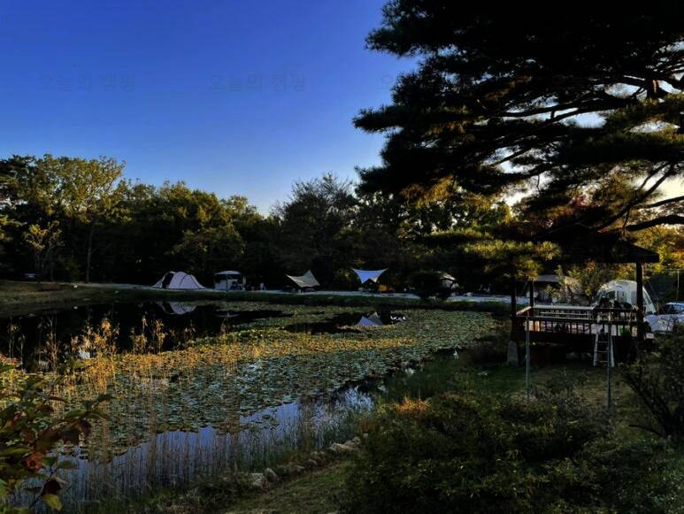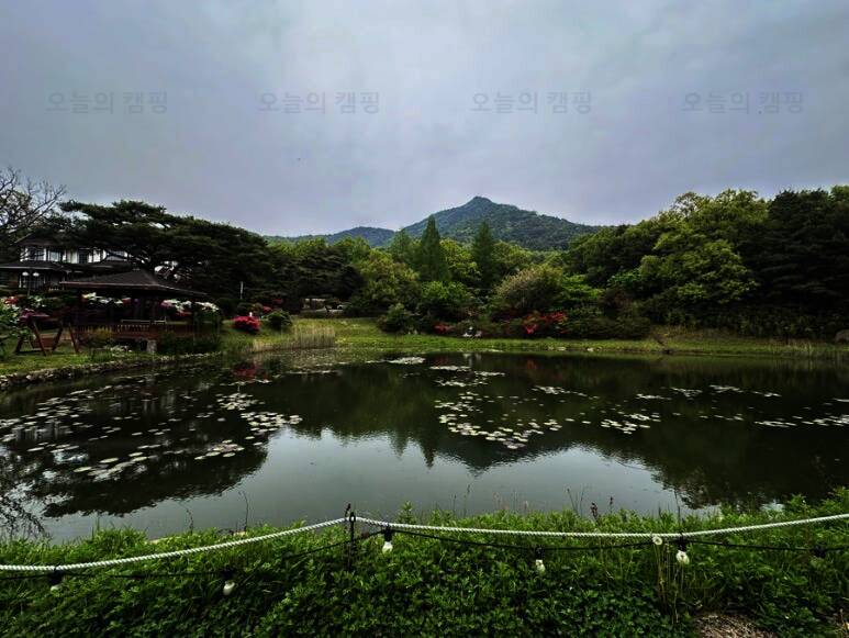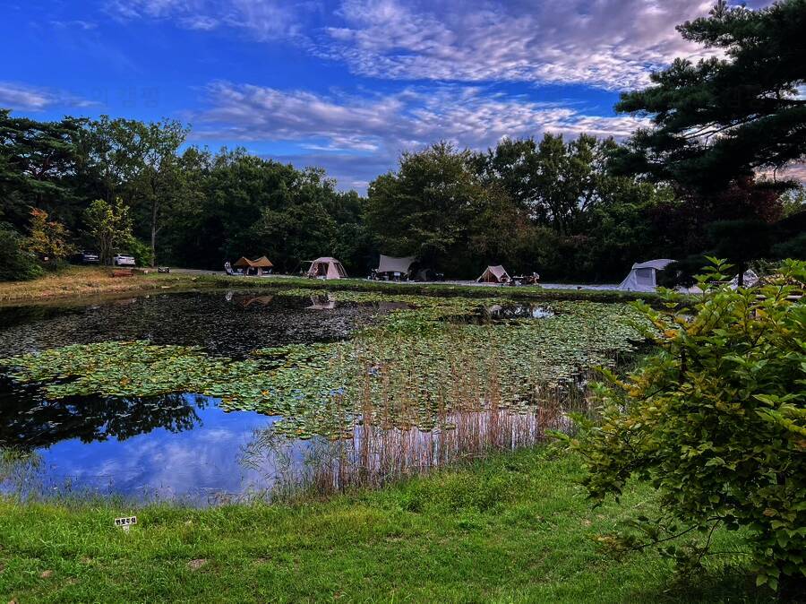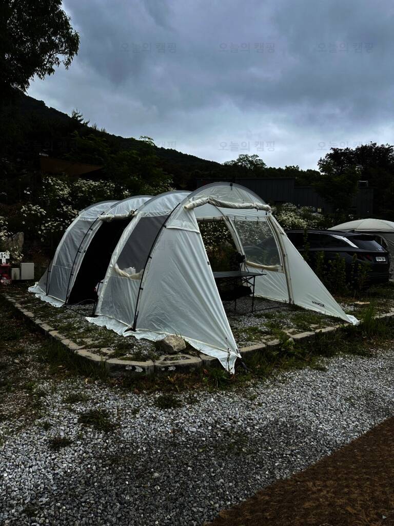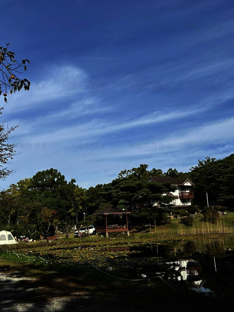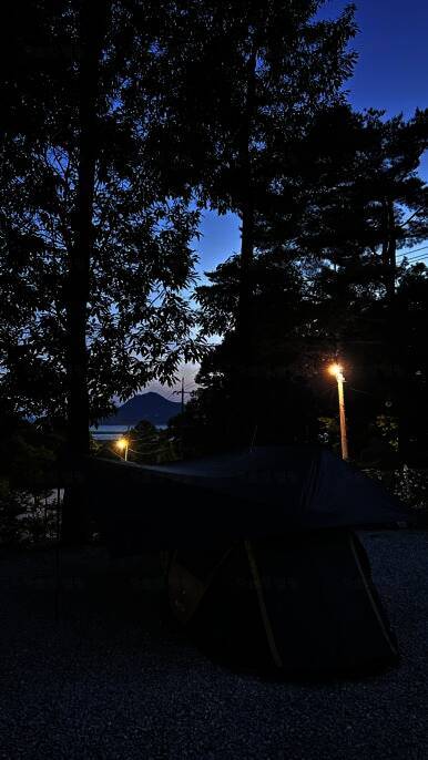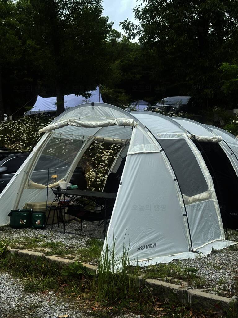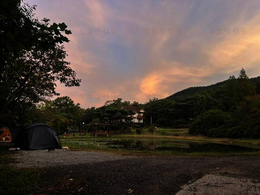 아름다운 산, 바다, 호수 뷰를 가진 캠핑장