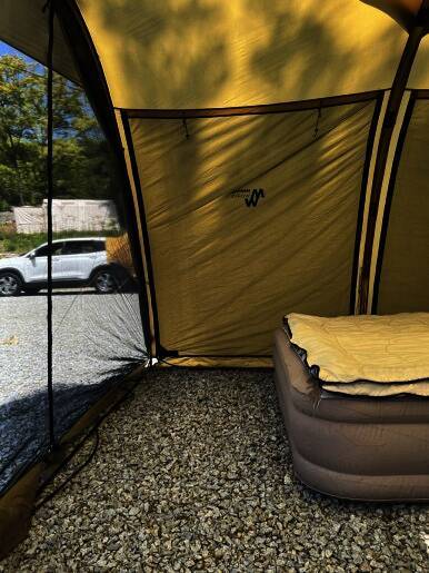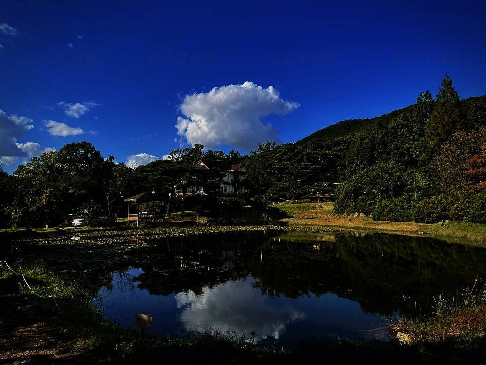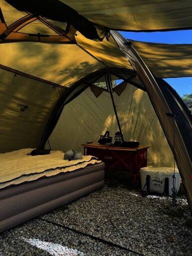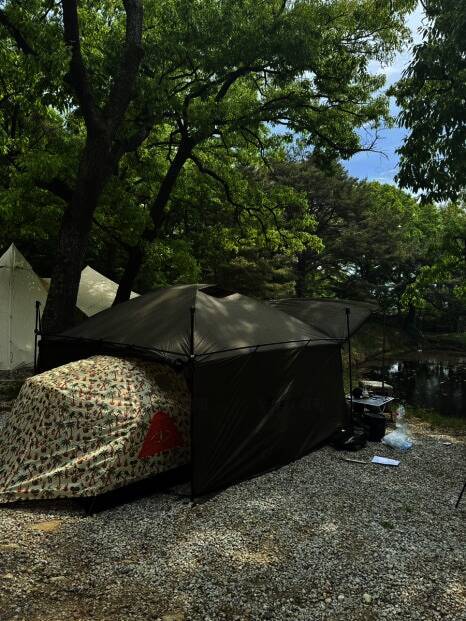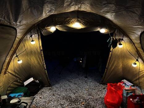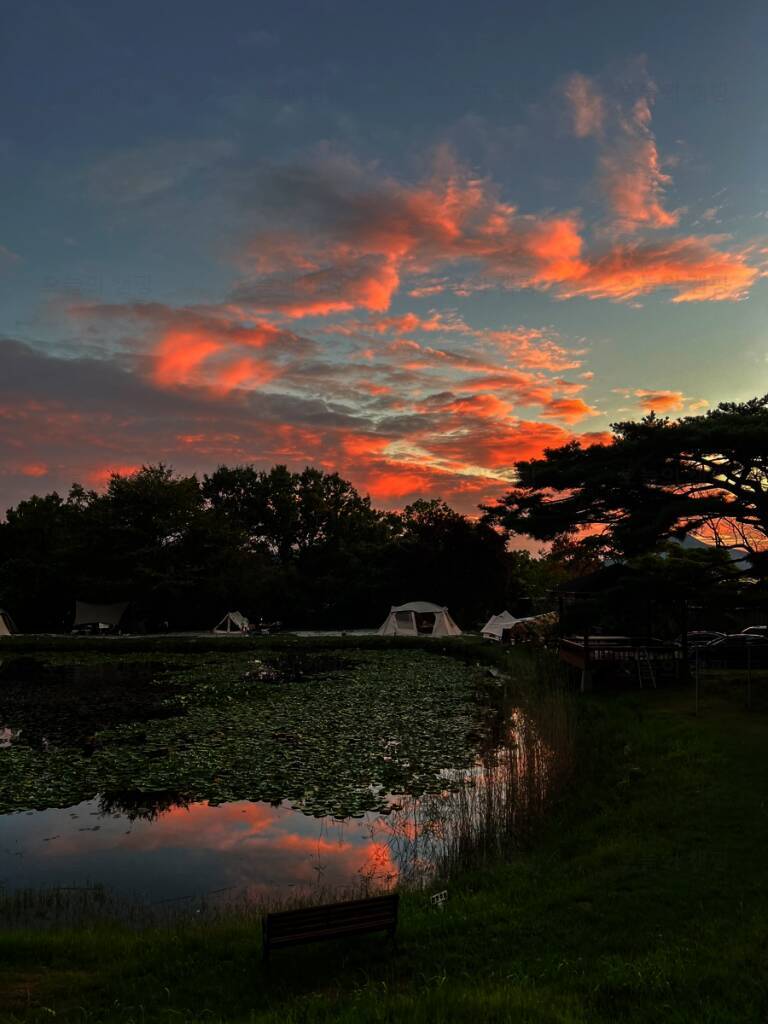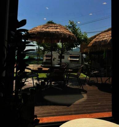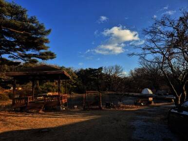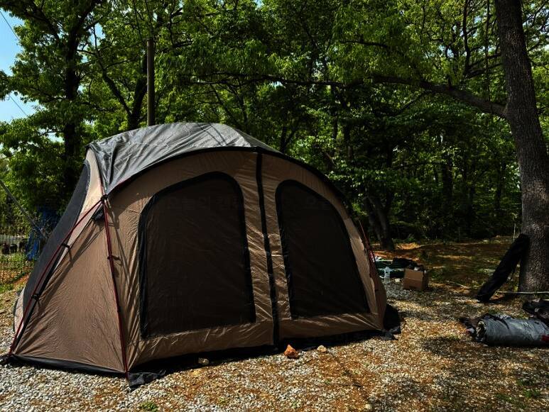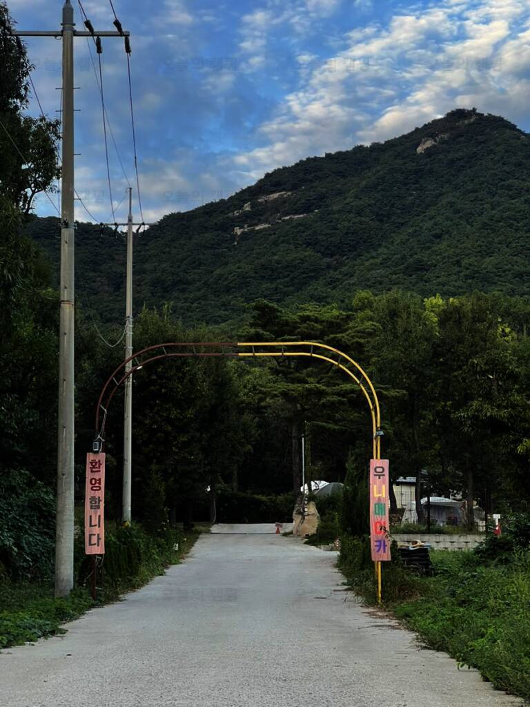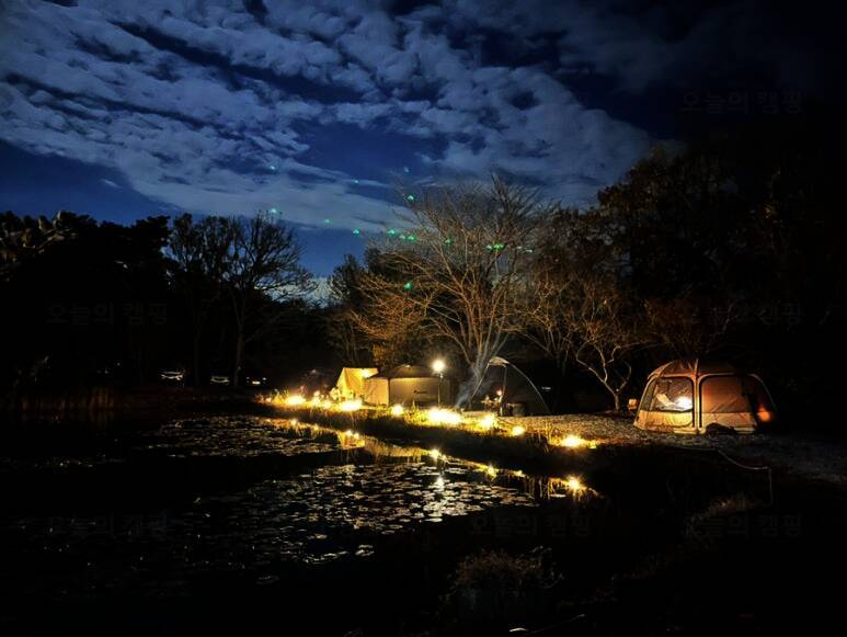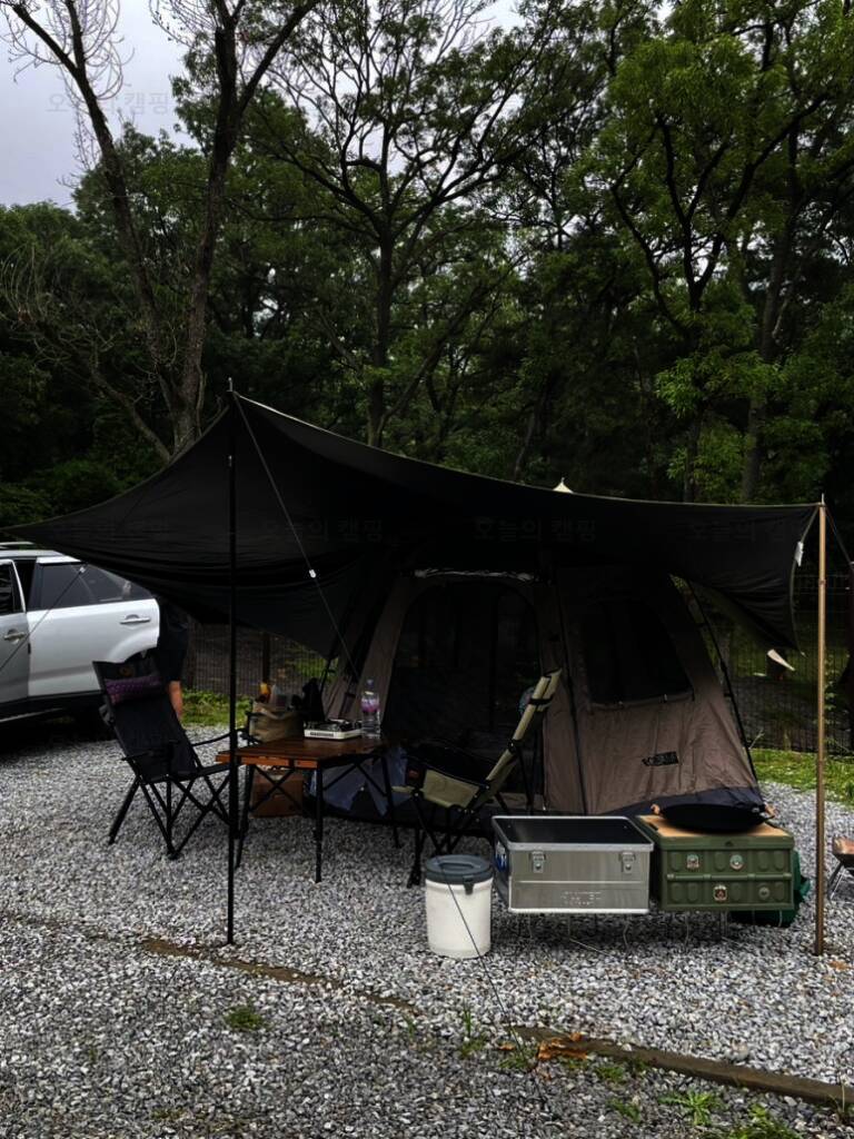 아름다운 산, 바다, 호수 뷰를 가진 캠핑장