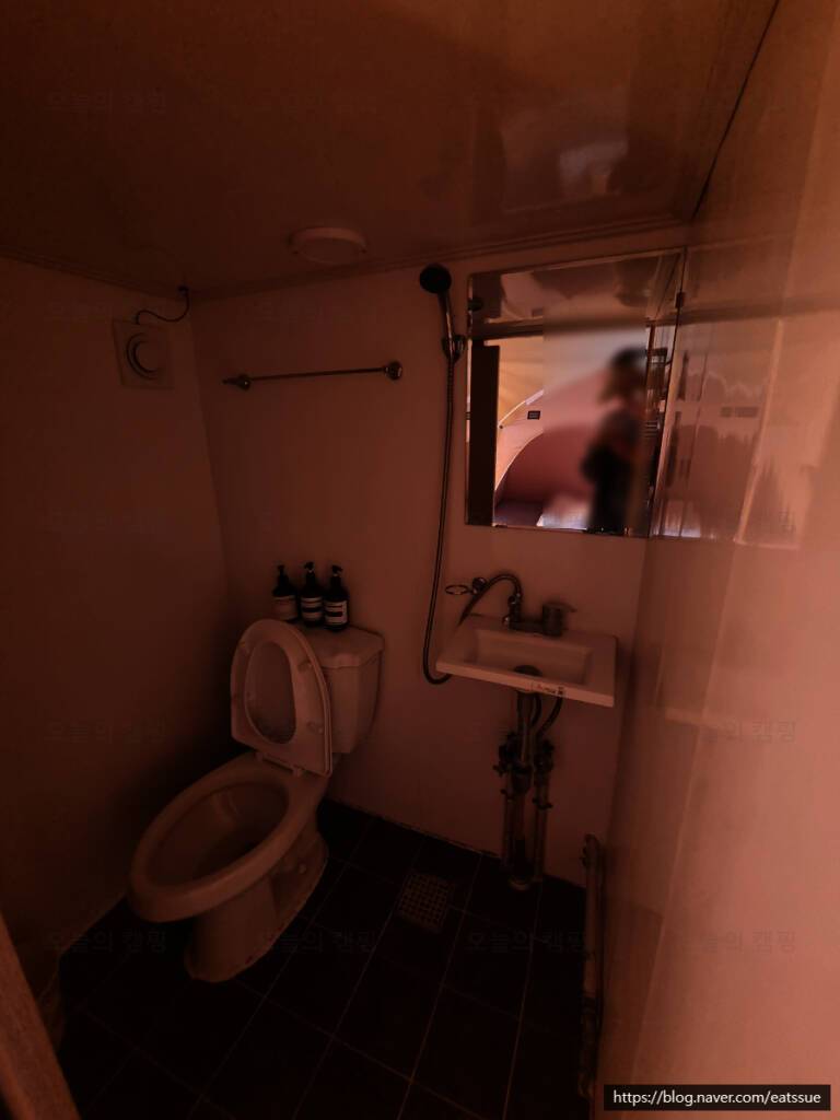 ㅋㅋㅋ 파인벨리 글램핑의 장점 중 하나는 공동화장실이 아니라 개별화장실인 점.. 솔직히 외관이 텐트여서 그렇지 거의 펜션 수준의 퀄리티였다. 방 내부는 펜션 수준이지만 외관은 텐트 느낌에 야외...