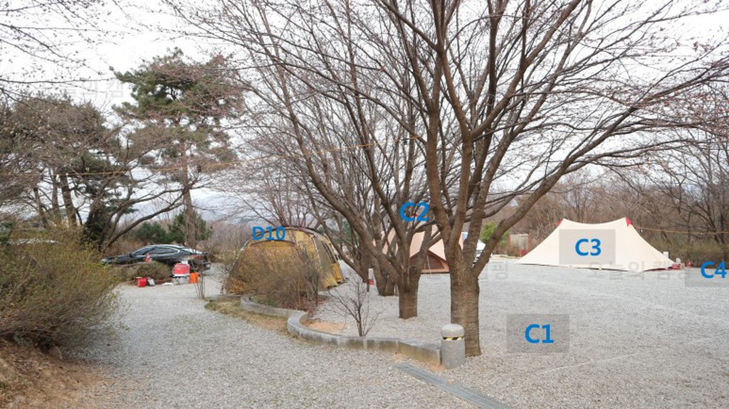 용인과 안성에 걸친 지역에 있는 비봉산오토캠핑장 용인캠핑장으로 알았는데 주소는 안성 삼죽면... 단체캠핑하기 좋아요. 비봉산캠핑장은 사이트에 주차해도 공간 여유가 있죠. D10, C1, C2, C3, C4는 둥글게...