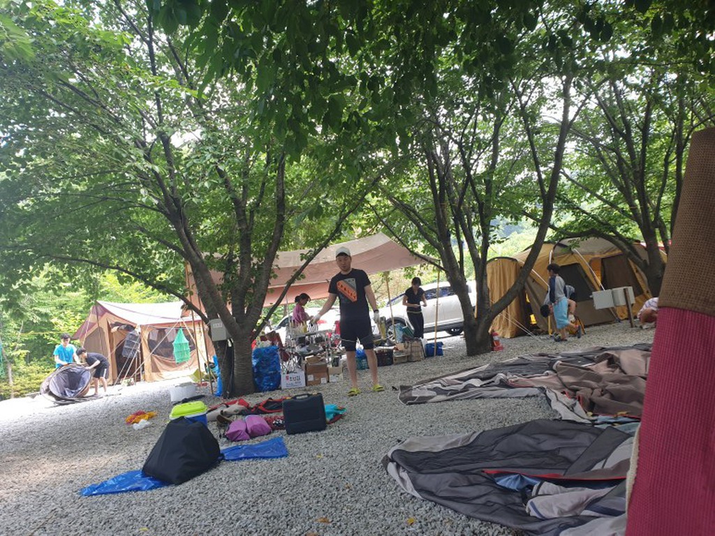 7월 장마가 시작하기 전 동네친구들 두가족과 함께 급 잡게된 캠핑. 처음엔 다른 곳이였지만 변경하여 가게된 비봉산 캠핑장.. 벚꽃이 피고 질때쯤 친구네와 한번 방문한 곳이라 낯설지 않은 캠핑장. 다시...