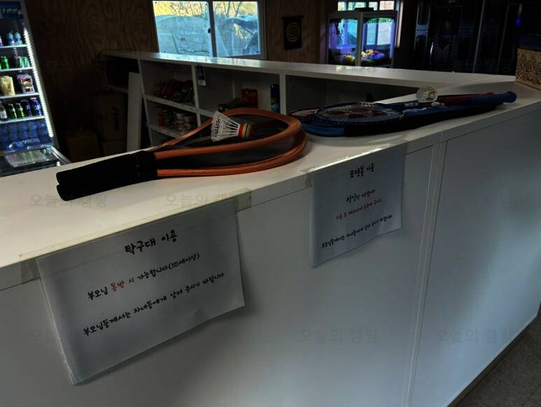 무선인터넷, 오락실, 물놀이장, 운동시설, 장작판매, 전기, 온수