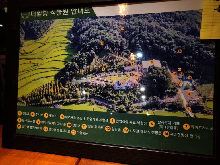 식물원캠핑장 '더힐링식물원 야영장' 입니다 더힐링식물원의 안내도에요 저희는 매표소 바로 뒤에 있는... 맡으며 힐링을 하기엔 정말 좋아보였어요~ 더힐링식물원 야영지는 이 곳이 힐링장이었나봅니다 ㅎ...