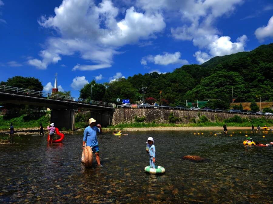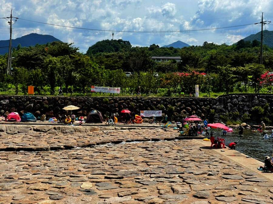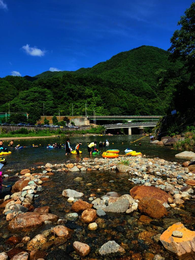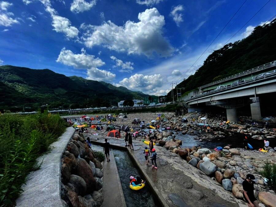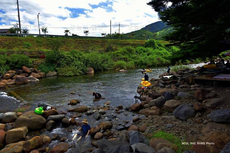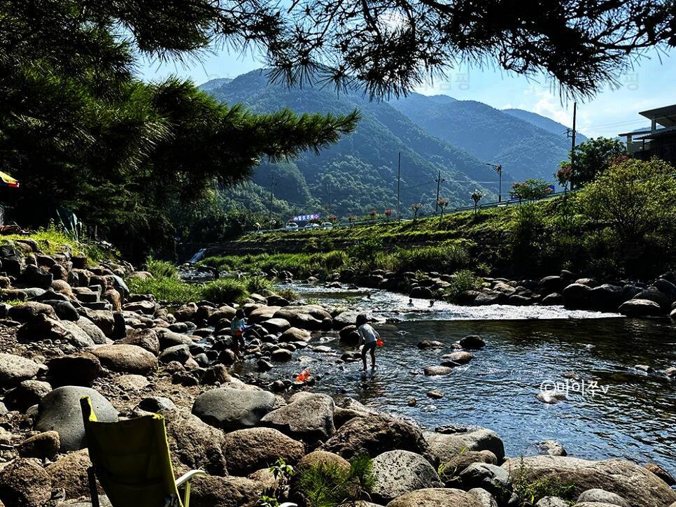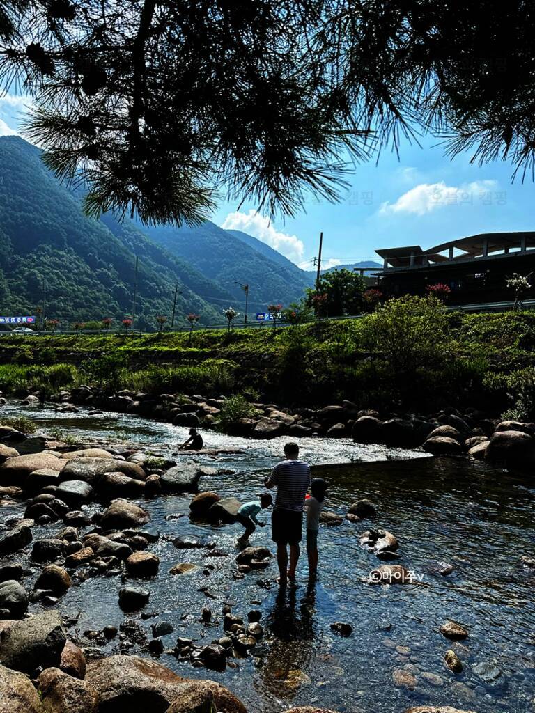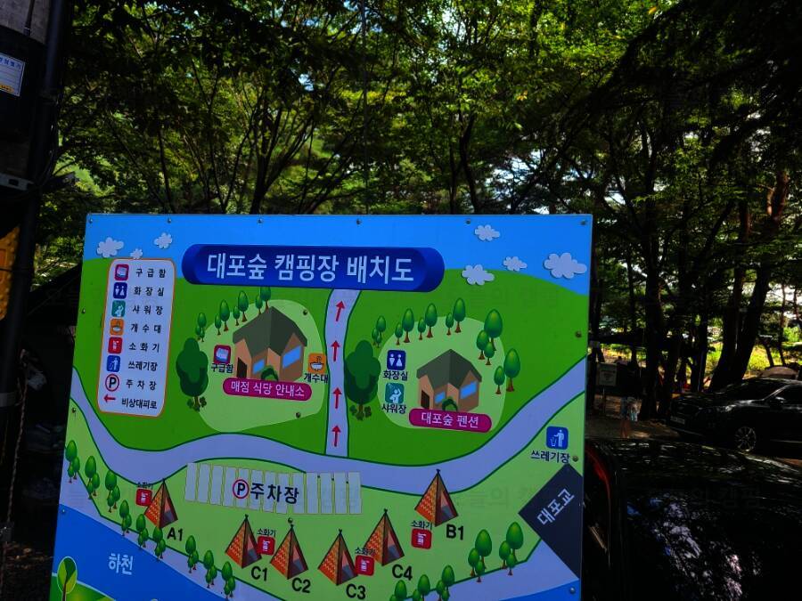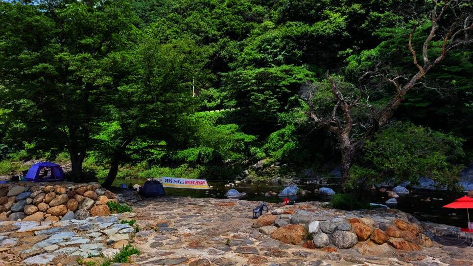 전체적으로 소나무가 우거져 있어서 여름에도 시원한 그늘에서 캠핑을 즐길 수 있겠더라구요. 대포숲캠핑장은 수상안전요원이 있어서 안전하게 계곡물놀이 즐길 수 있어 보였고, 좀 더 넓은 공간에서 물놀이할...