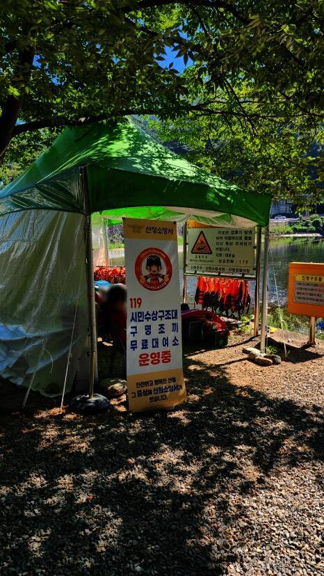 경남 산청계곡 삼장교 : 아이와 가기좋은 대포숲 캠핑장 옆 넓은 계곡 ( 천연 유수풀 이용불가 X) 사진... +간단한 신상정보 기재하고 대여가능 대포숲 주변으로 숲 그늘을 이용할 수 있는 자리도 있었어요. 캠핑의...