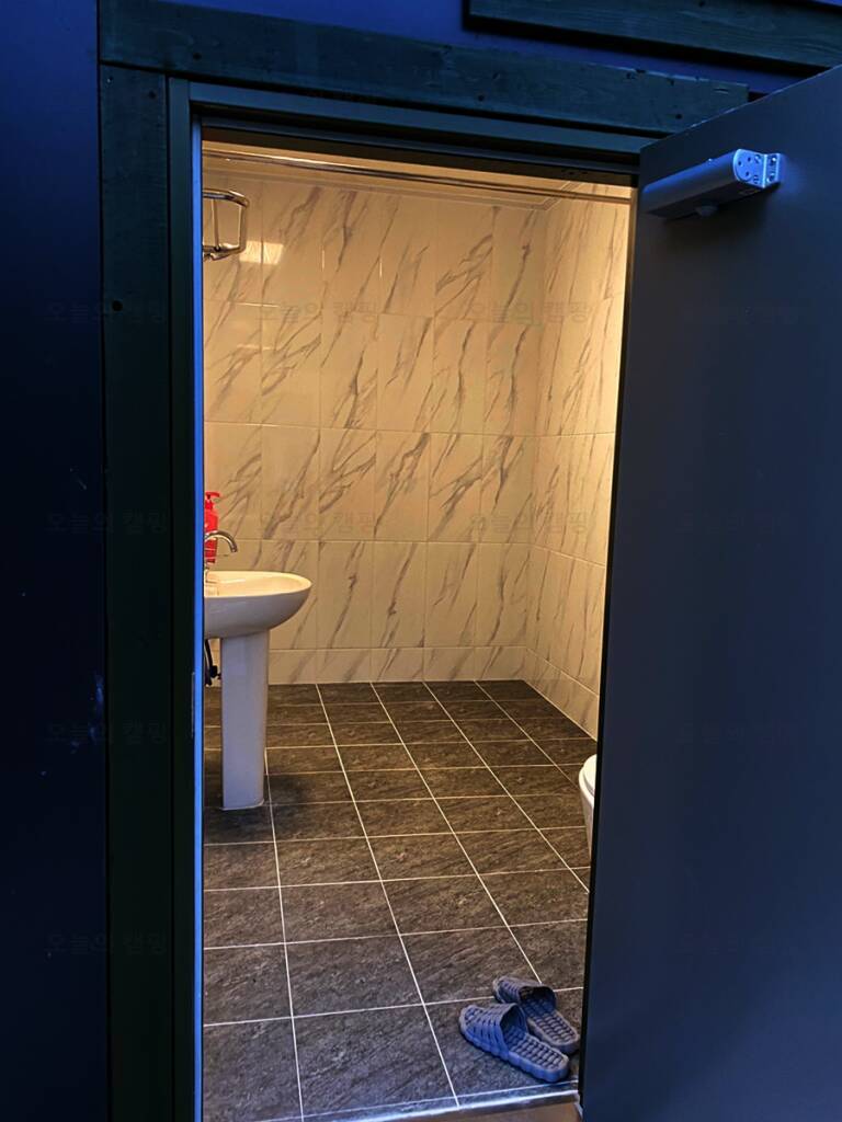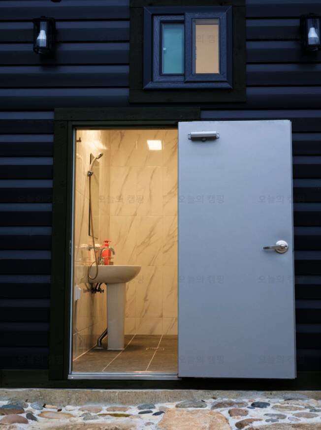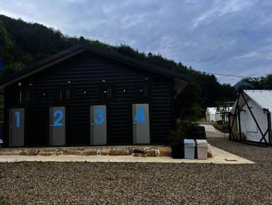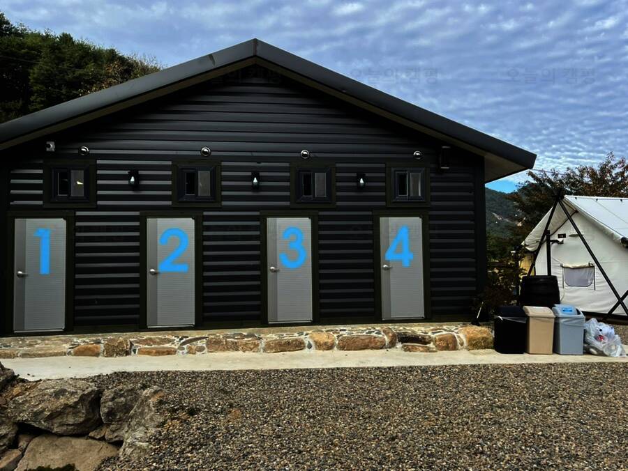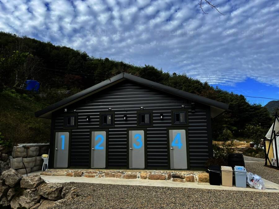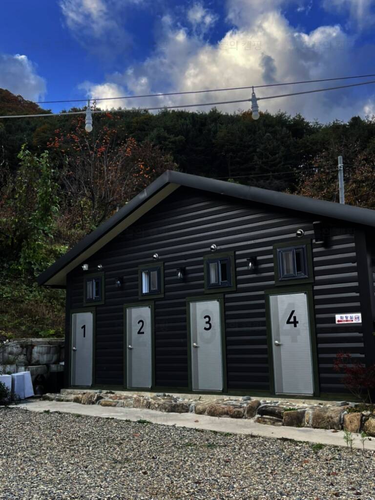 감성 캠핑장답게 알전구도 걸려있고, 옆 사이트를 가려주는 가림막도 있어서 주인분의 센스가 너무너무 좋다는 생각을 했다! 그리고 또하나! 하늘소리캠프의 특이점은 화장실이 따로 있다는 점이다! 내가 다른...