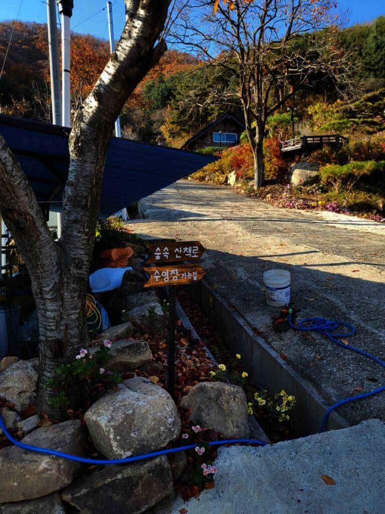 <정보> 입실 15:00 퇴실 11:00 2인 기준 초과 인원시 추가비용 있음 저희는 포항에서 2시간 20분 정도 걸려서 도착한 듯 해요 ~~ 팻말로 하늘소리캠프라고 적혀있어요 ! 입구를 따라 들어오면 보이는 캠핑장...