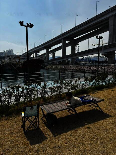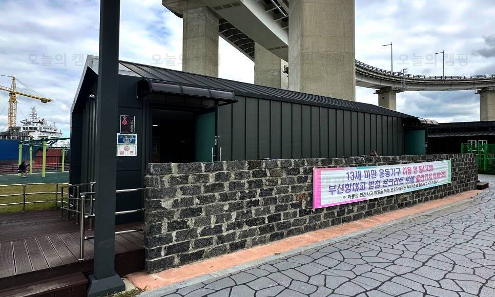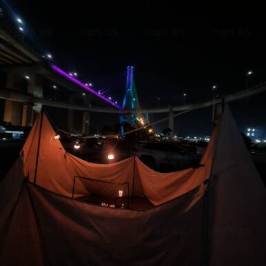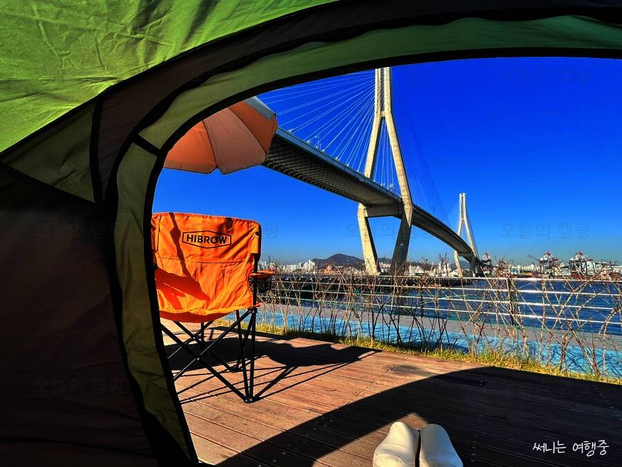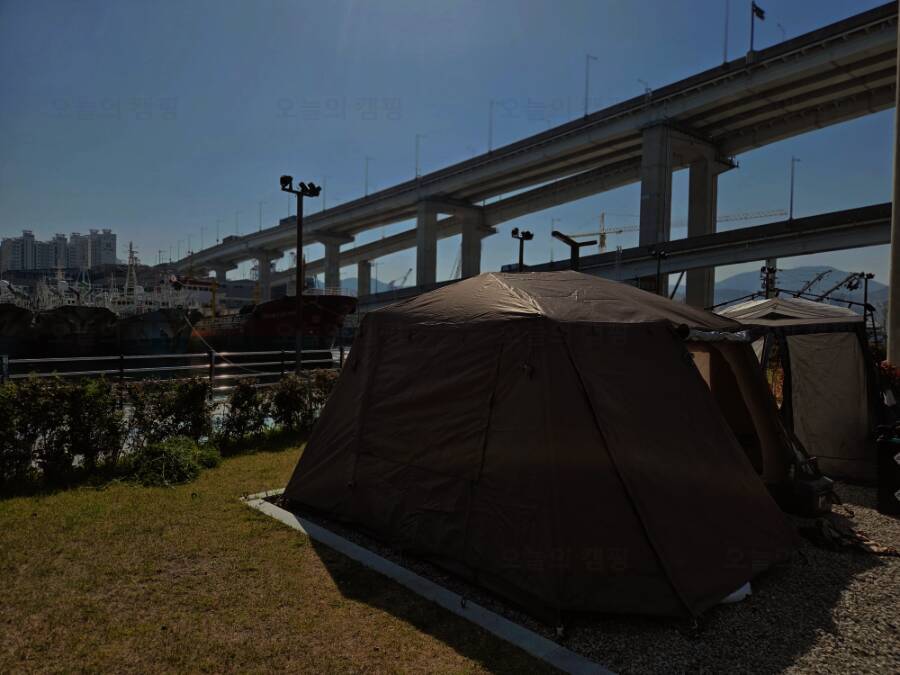 부산항대교 영도 진입로 아래 위치한 바다 캠핑장