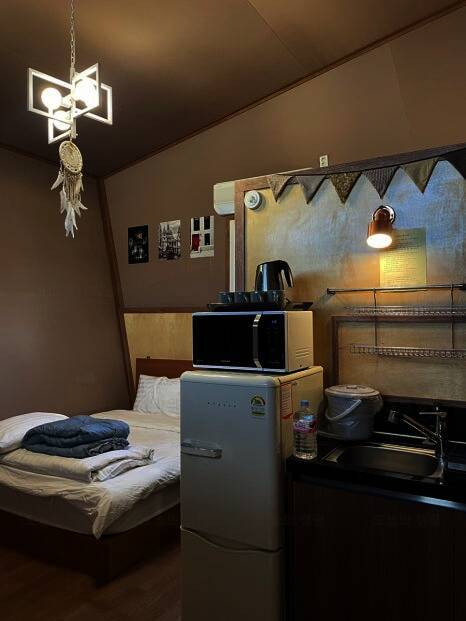 ㅎㅎ) 경주 수영장 펜션 용장글램핑 방문 후기를 시작해볼게요오 ✔️용장 글램핑 ✔️경북 경주시... 앞에 캠핑의자랑 테이블이 있고 방 바로 앞에 테라스 자리도 있습니다 문 열자마자 미니 주방이 보이고...