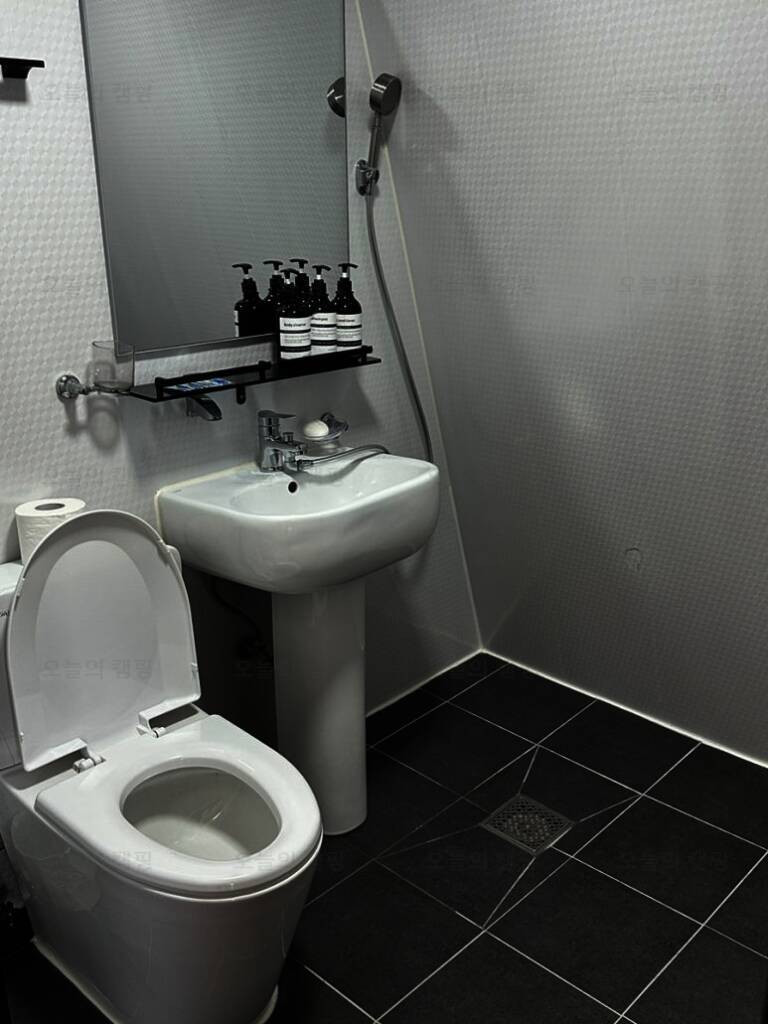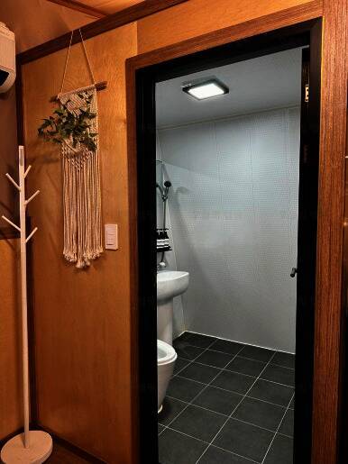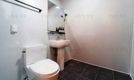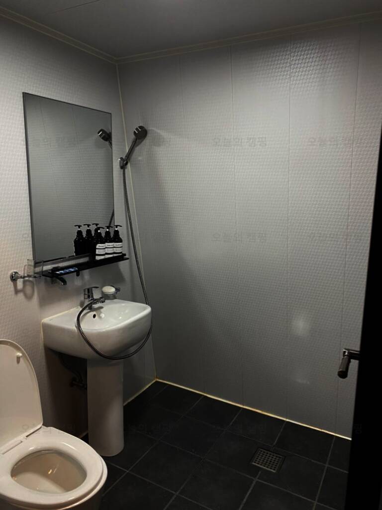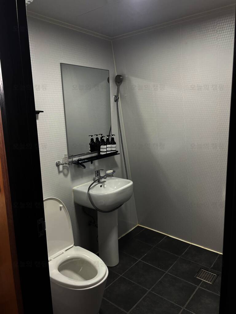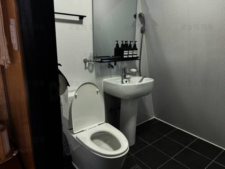 용장글램핑의 가장 큰 장점은 내부에 화장실이 있다는 점.. 캠핑이나 다른 클램핑을 가면 바깥의 공용화장실을 사용해야해서 엄청 불편했는데 여기는 샤워도 가능한 개별 화장실이 내부에 있어서 너무...