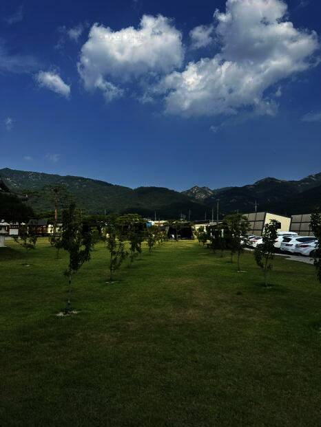 한옥 + 잔디밭 = 조금 더 편리함을 찾는다면 펜션을, 캠핑 느낌을 느끼고 싶다면 글램핑을 취향에 맞춰서 선택하기 좋다. 15시에 안내실에서 체크인하면 간단한 안내 사항을 알려주신다. 용장 글램핑은...