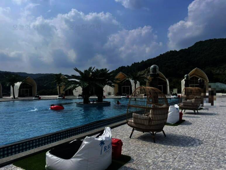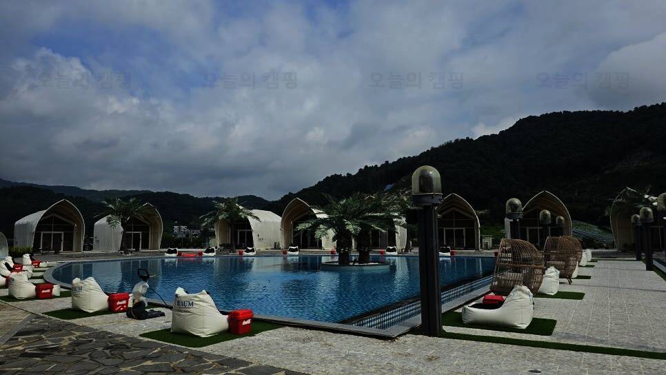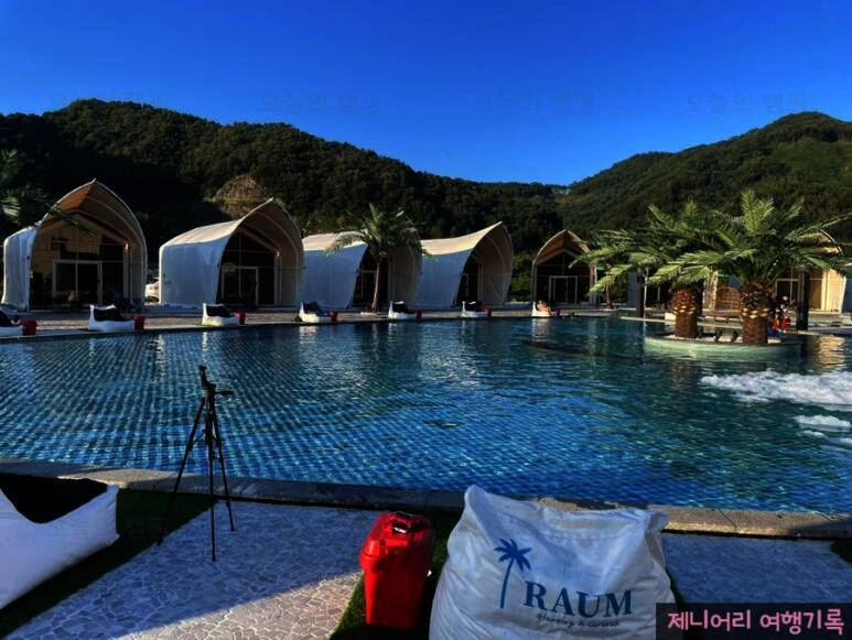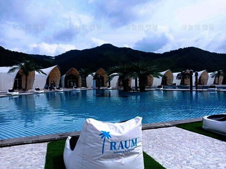 이어 캠핑 일기에 남기기로 트라움풀빌라 글램핑&카라반 주소_경기 가평군 상면 왕대벌길 60 트라움... 수영장 글램핑장 한 가운에 위치한 수영장 사실 이거 때문에 여기 오는 듯 유아풀과 일만 풀 두 군데로...