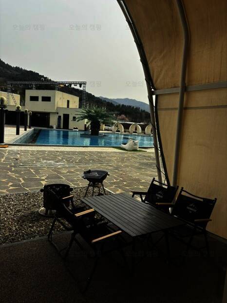 가평 트라움풀빌라글램핑카라반 #내돈내산 & & 가평트라움풀빌라글램핑 그림 같은 수영장 실제로 봐도... 카라반은 실내라 전혀 춥지 않았어요. 비와도 고기 구울 수 있는 야외 지붕 데크와 캠핑 테이블 카라반...