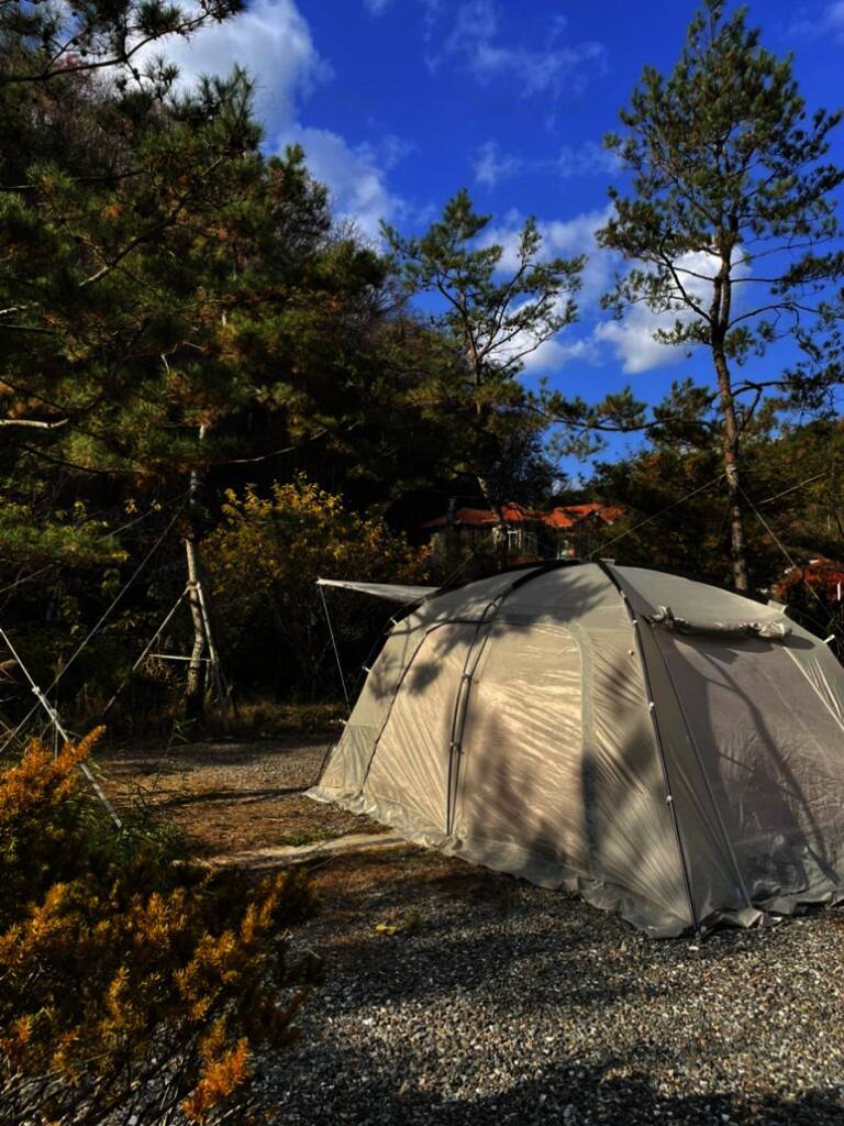 #가을단풍 캠핑의 낭만을 더해줬습니다. 05. 7번 사이트 #굿나잇캠핑장7번 사이트 예약해서 이용했습니다. 사이트 공간이 8m 로 넓어 텐트와 차량을 함께 배치해도 여유가 있었습니다. 화장실과는 약간...