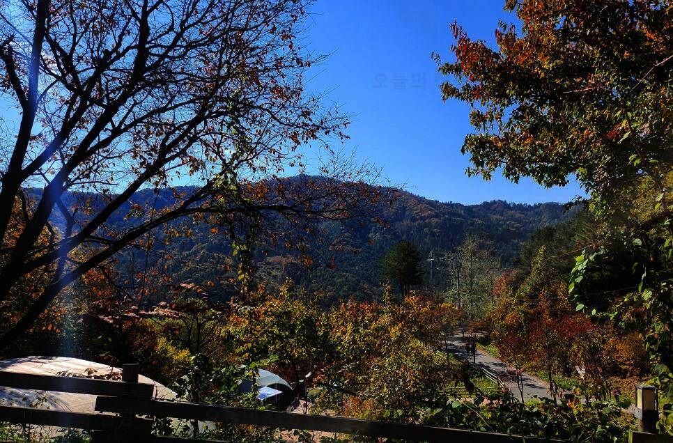 이번 캠핑의 주종은 막걸리에요. 마트에서 따로 사진 않았지만 홍천막걸리가 있길래 한컷! 홍천 굿나잇 캠핑장 가는 길이에요. 가는 길 내내 산에 둘러쌓여 있었는데, 다음주가 되면 단풍이 더 들어서 이쁠거...
