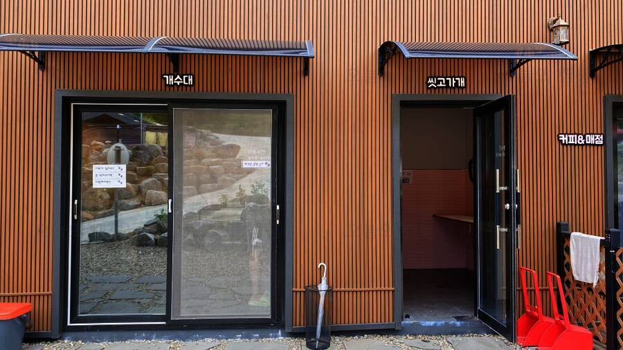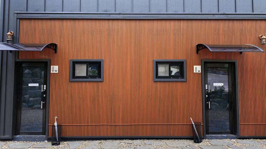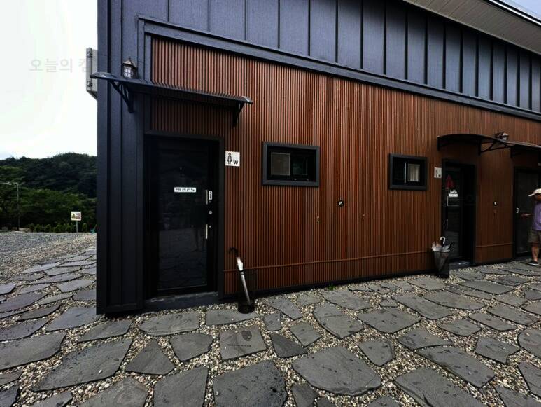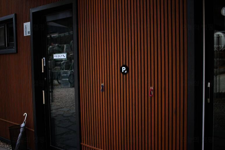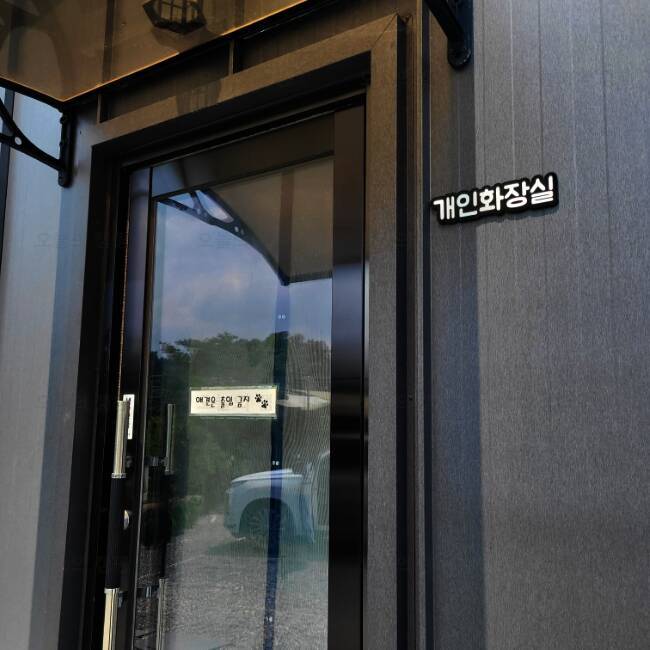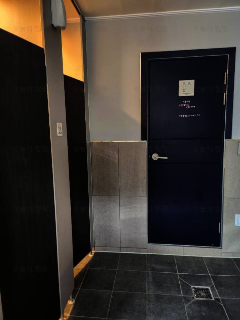 드루왈캠핑장의 또 좋은점은 사전에 개별화장실을 신청하면 추가요금을 내고 개별화장실을 이용할수 있어요 비밀번호는 저희만 알고있어서 들어올일 없단 좋은점 깨끗하죠 ? 저희는 연박이기도했고 우중캠핑...