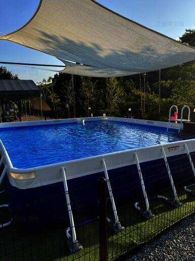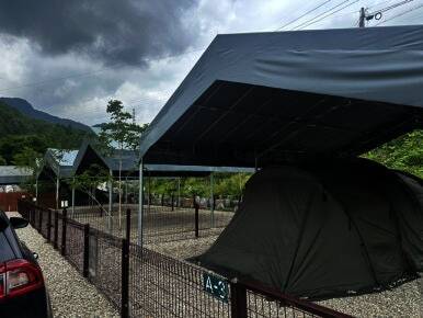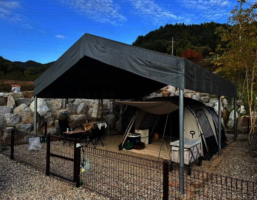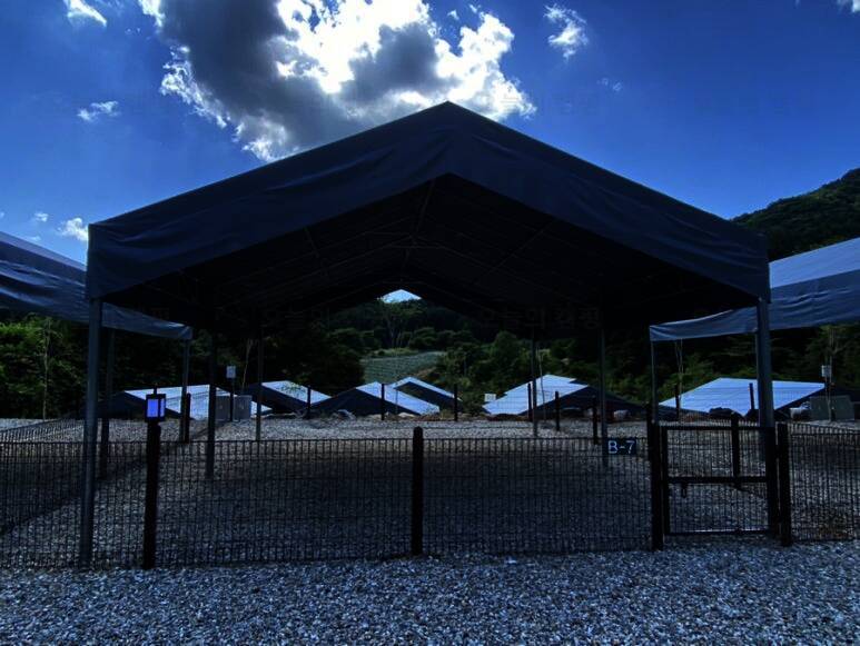 울타리 애견 캠핑장 드루왈 캠핑장 타프 존에서 여름 …