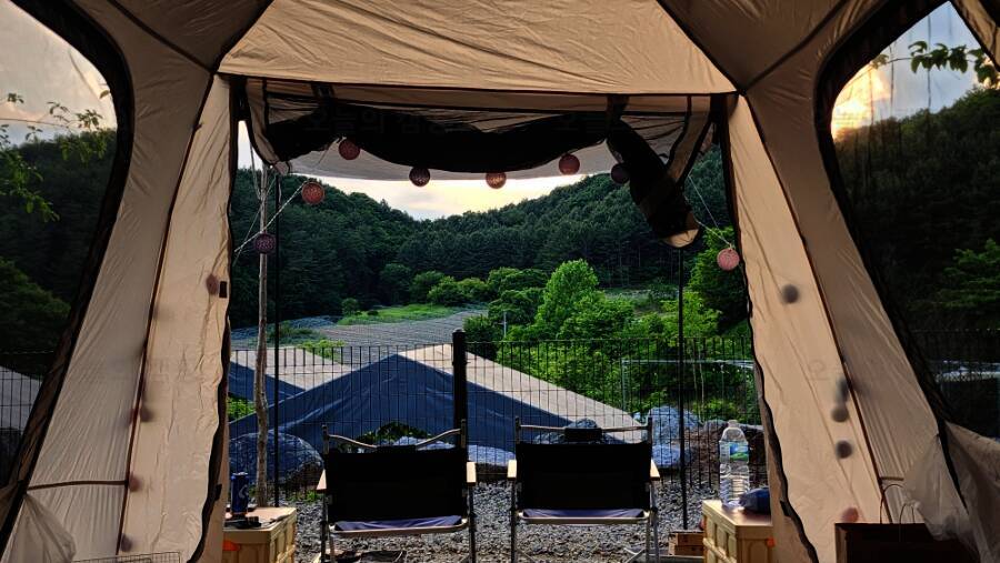 강원도 홍천 드루왈 캠핑장, 타프와 울타리 계곡까지 …