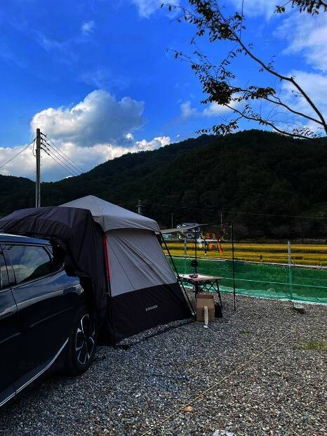 강원도 영월 가을 차박 캠핑 위드힐링캠핑장 W4 사이트 9월말 10월초는 낮에 해가 있을 땐 무덥다고... 이번에 캠핑하면서 다른 캠퍼분들의 텐트 구경 많이했는데 가격 검색해보고 또다시 구매는 다음을...