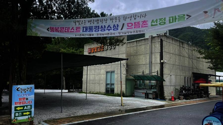 2박3일 캠핑을 갔다왔다. 캠핑장은 달빛계곡 캠핑장. 장흥에 있다. 저번주에 이어 캠핑장에 오면 비오는 악질 루틴이 생겼다. 사진 속 건물은 관리동. 사장님이 디아블로하는 것을 볼 수 있다. 인간미 넘치심.....