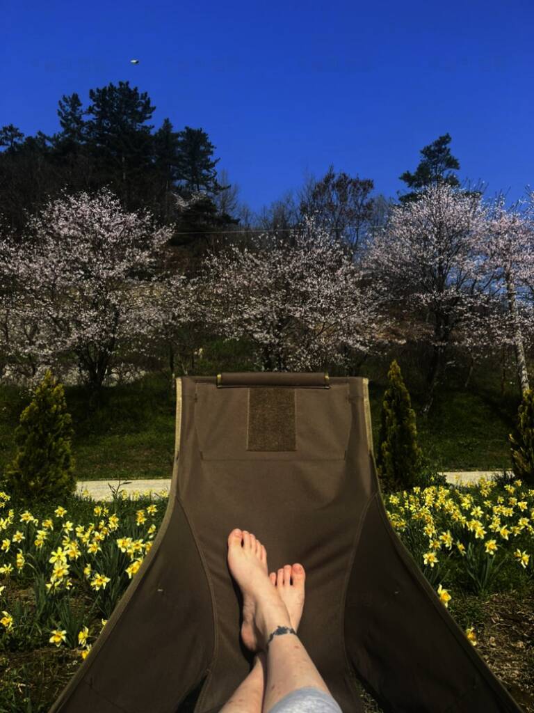 봄이 되었으니 캠핑을 가야해~ 벚꽃 캠핑을 위해 거창 병곡마을로 예약! 4월 12일~14일 2박 3일 캠지기의... 이 달빛고운병곡 캠핑장에서 계곡으로 바로 내려가는 계단이 있어 이용하기 좋았다는 점! 데크...