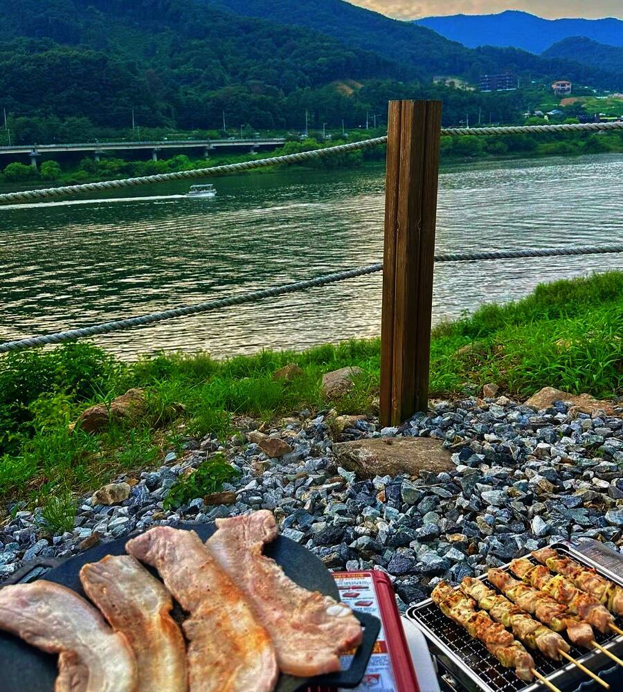 가평 계곡 바로 앞 물멍하기 좋은 신생 가평뷰캠핑장입니다.