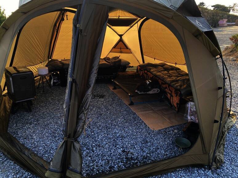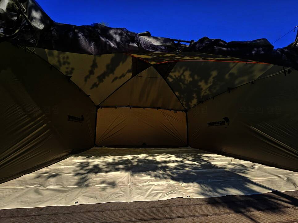 백컨트리 360 설치 이번에는 데크이기도 하고 날씨가 살짝 추워서 스타오트오프에 구매한 3.5m * 3.5m 짜리 그라운드 시트도 깔아봤는데 살짝 컸다ㅠㅠ 3.4 * 3.4 가 있으면 더 좋을듯 확실히 데크는 바람이 아래서...