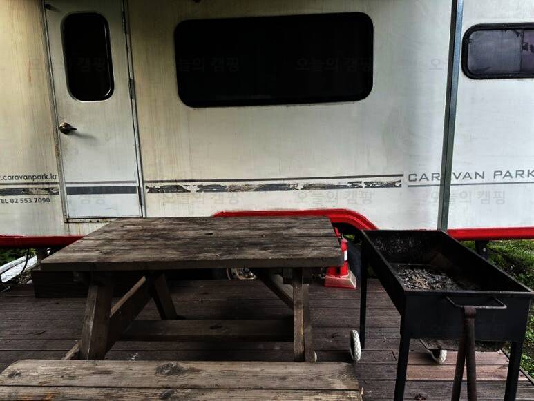 오토캠핑, 차박, 반려동물 동반 가능, 장기숙박. 카라반 숙소 앞 주차 가능. 가평 카라반 캠핑장 울란팍 카라반 캠핑장 각 카라반마다 바깥 벤치 세트가 놓여 있어서 조금만 더 시원해지면 바깥에서 저녁...