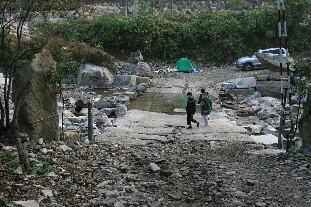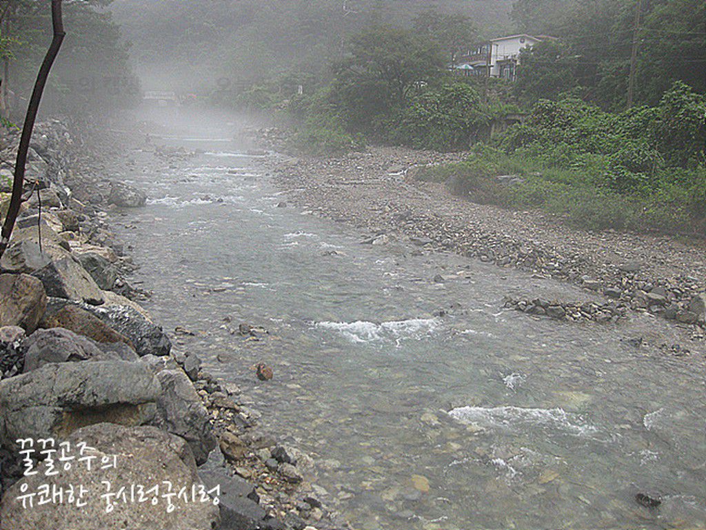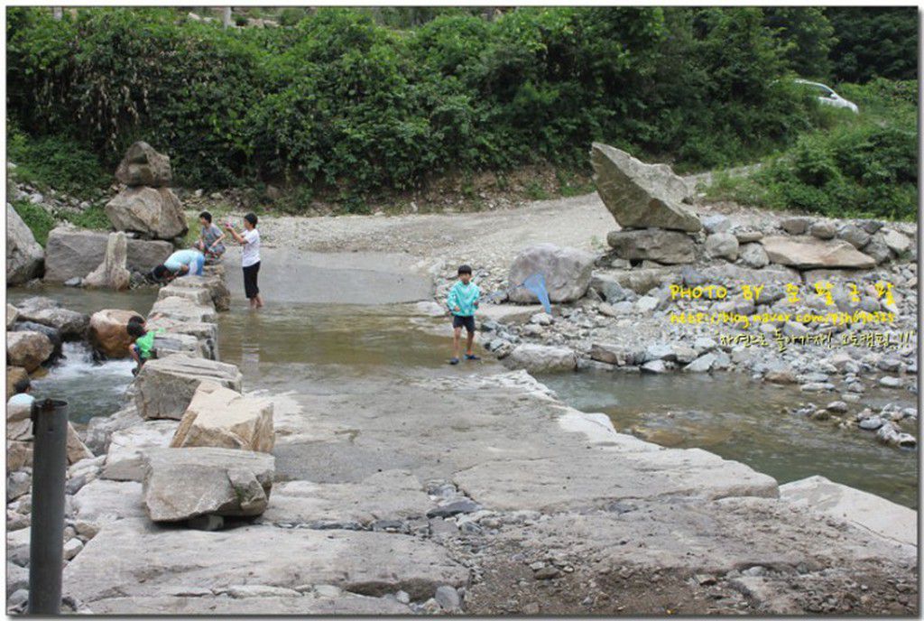 워낙에 캠핑매니아 분들이 늘어나는 추세인지라.. 쫌 괜챦다는 캠핑장들은 미리미리 예약을 해야 한다지.. 계곡을 끼고 맑은 물이 흘러내리는 곳이다.. 이곳을 건너야만 물소리캠핑장으로 들어올수가 있는데.....