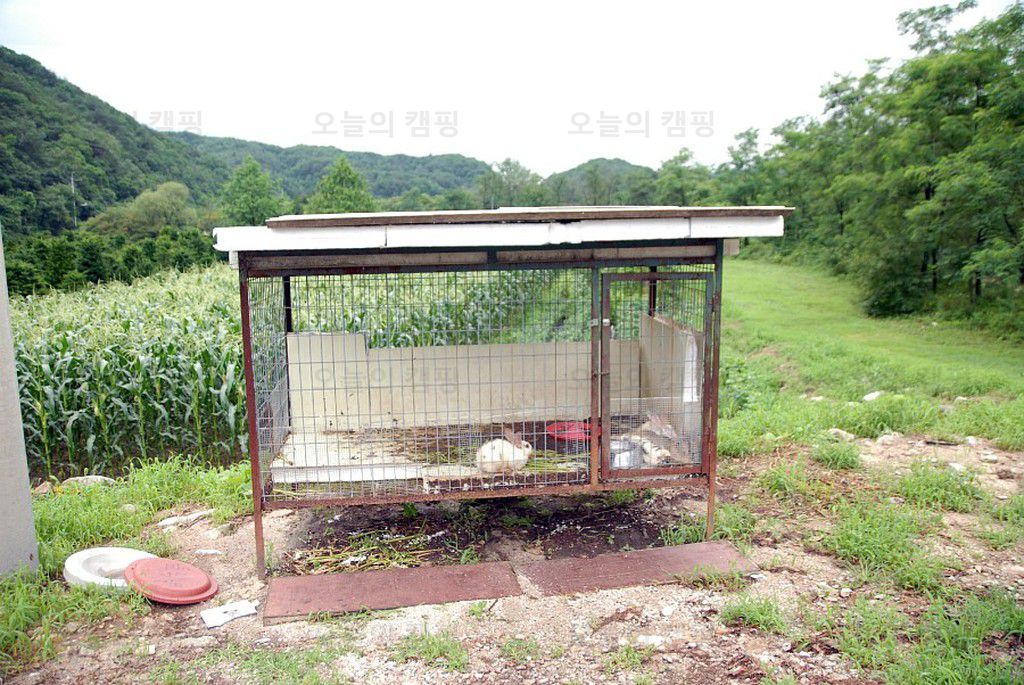 이번에 소개해 드릴 캠핑장 역시 포천의 약사계곡에 위치한 스마일캠핑장입니다. 주소는 포천시... 캠핑장 안내(접수)소 역할을 하는 곳 같군요.. 1캠핑장 앞쪽에 이렇게 토끼도 기르고 계십니다. 1캠핑잘의...