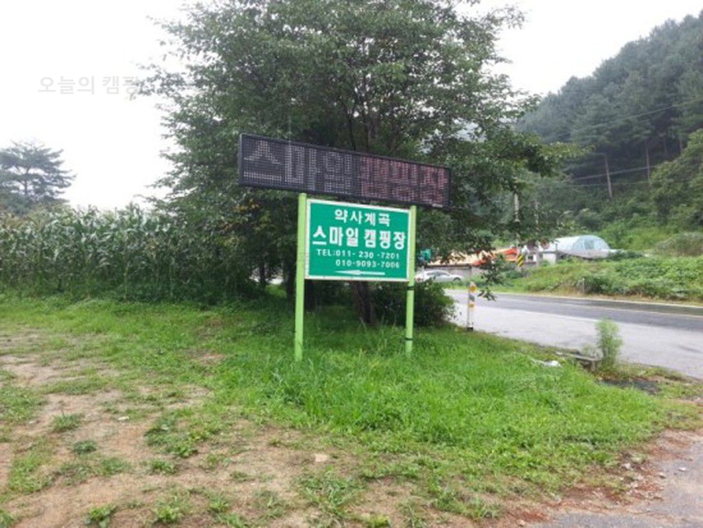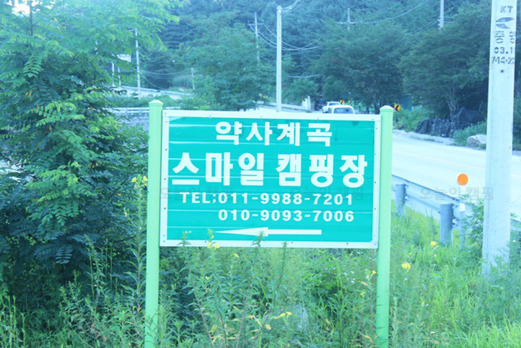 네비를 따라 달려오다보니 스마일캠핑장 입간판이 나타난다. 5년전쯤 친구들과 약사계곡으로 캠핑을 왔는데 너무 마음에 들었던 계곡이라 약사계곡을 위주로 검색을 했다. 대형캠핑장이 아닌 4~50개정도의...