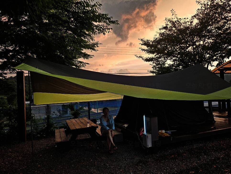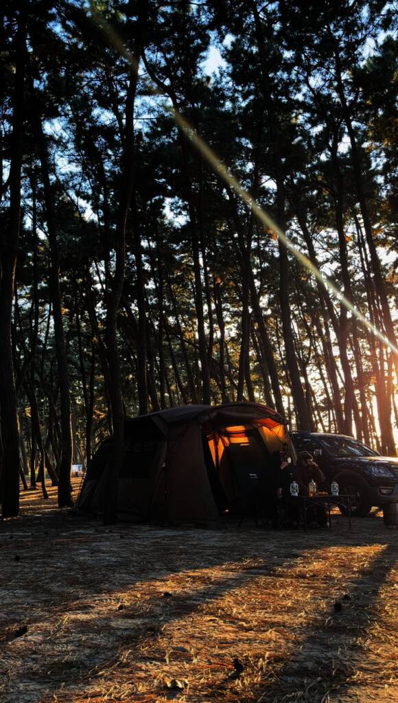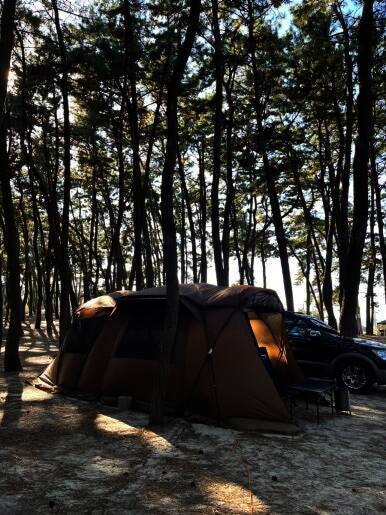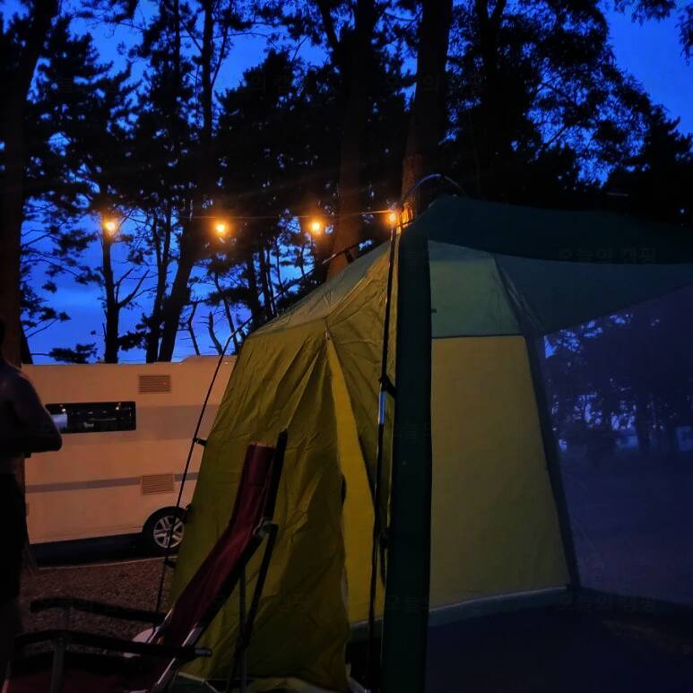 캠핑의 계절 이 때 열심히 돌아다녀야져 노을 맛집 캠핑장 또 왔습니솔솔솔(3번째 방문임) 저는 약속있어서 좀 늦게갔더닝 셋팅 다 해놓으신 경씨 늦게가니까 멍꿀이네여? 서천 춘장대 솔내음 야영장 난다 나...