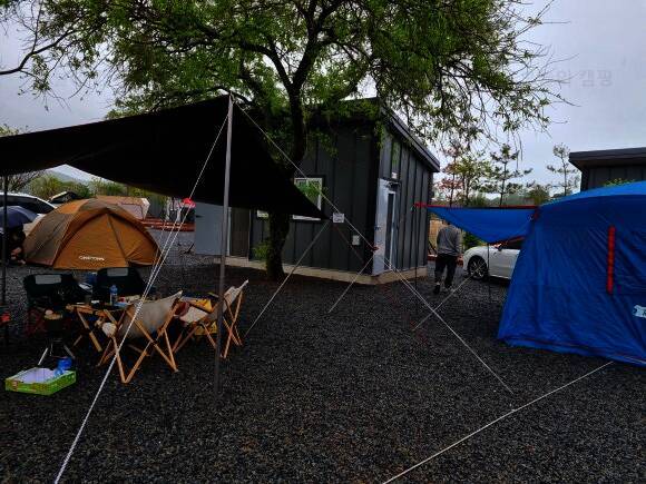 당진에 캠핑 예약했다가 비가 많이 온대서 양도하고 펜션으로 장소 변경한건데 펜션앞에 우중캠핑... 떠났습니다 서천 춘장대 해수욕장앞 라움스테이 팬션&캠핑장 너무 깨끗하게 잘 관리 되어있고 바다랑도...