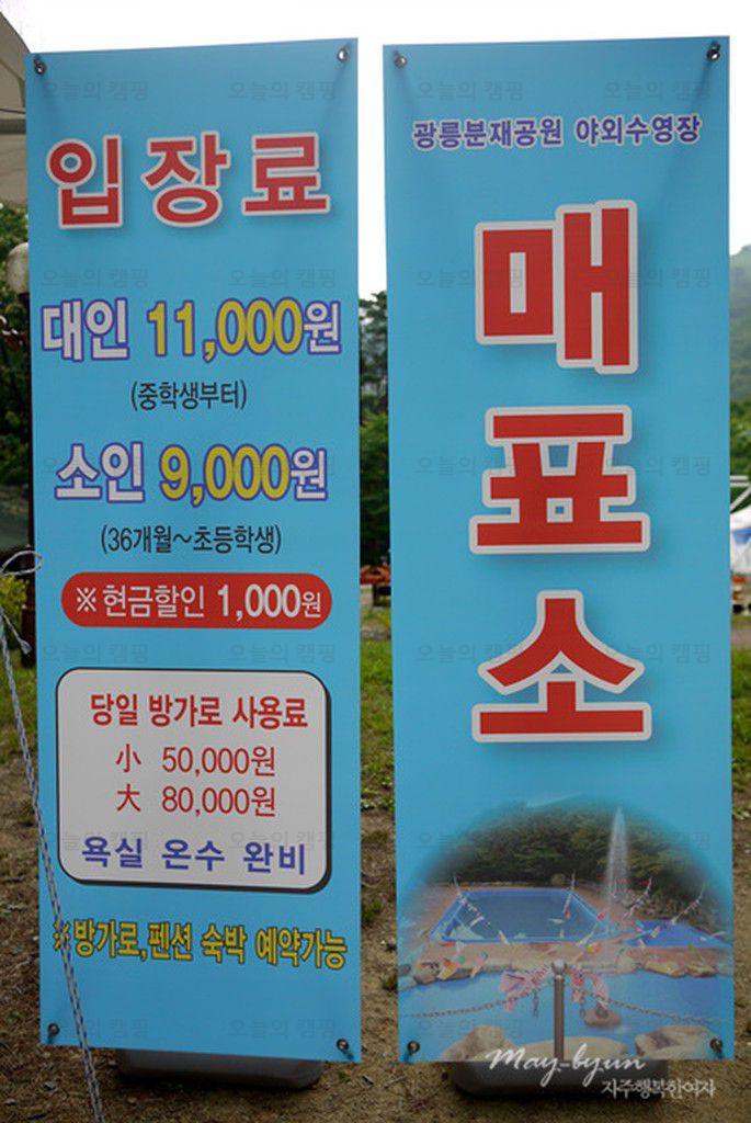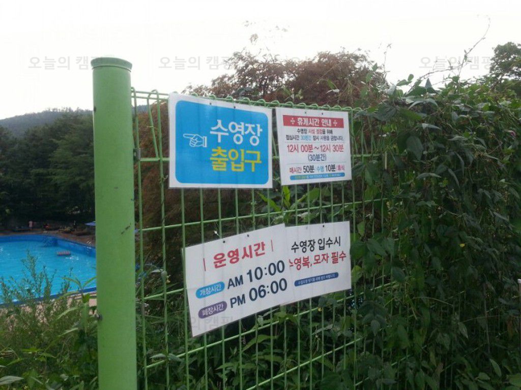 광릉분재예술공원캠핑장이 그런편이였다. 수영장입구에 붙어 있는 요금표 및 안전수칙. 캠핑을 안하고 수영장만 오는 사람들도 많았다. 파라솔도 빌려주고 하루종일 놀다가기에는 좋은 듯. 입장료는 캠핑하는...