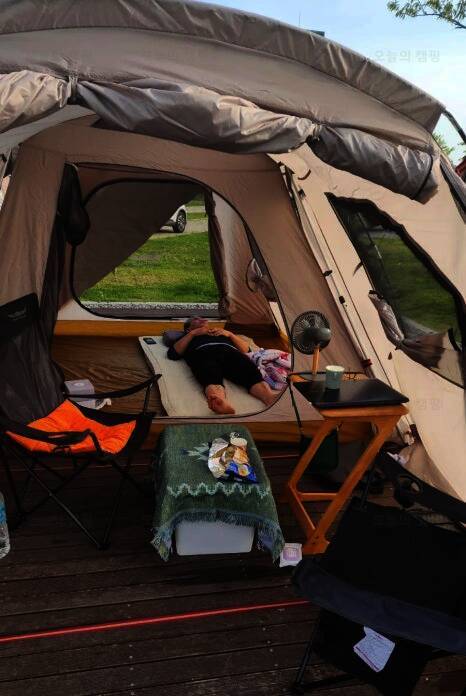 캠핑 일자 : 5월 30~ 6월 2일 사이트 : 청풍호반 오토 캠핑장 D 데크 (위에 타프 있음) 2박 -13만원 5개월만에... 사진의 80%를 차지하고 게신 이분은 그냥 녹아버리셧당 아침부터 하품 쩍 해주시고 라죽까지 야무지게...