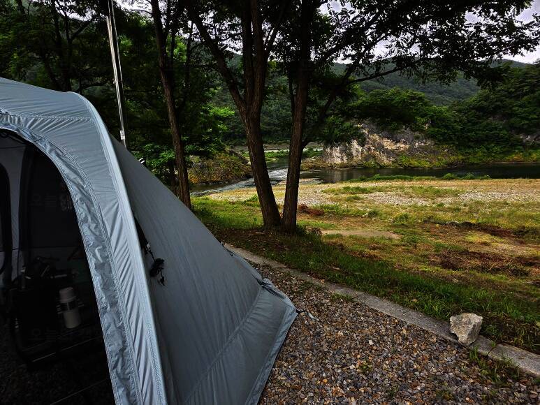 우중캠핑을 위해 예약한건데 영월로 가는 고속도로는 많은 비가 내렸어요 80키로 90키로로 저속주행을... 영월동강오토캠핑장 정말 멋진곳이더군요 솔로캠핑을 주로 하는 저한테는 아주 큰 사이즈의...