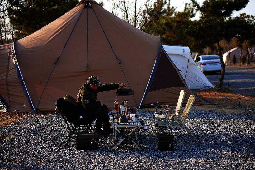 하지만 주말에도 알바를 하는 메인터빈을 위해 집에서 가까운 #매송오토캠핑장 을 열심히 30분 동안... 80개를 더 주문해야 할듯. 해질 무렵이렇게 한상 차려서 아내와 함께 음악을 들으며 도란도란 나누는...